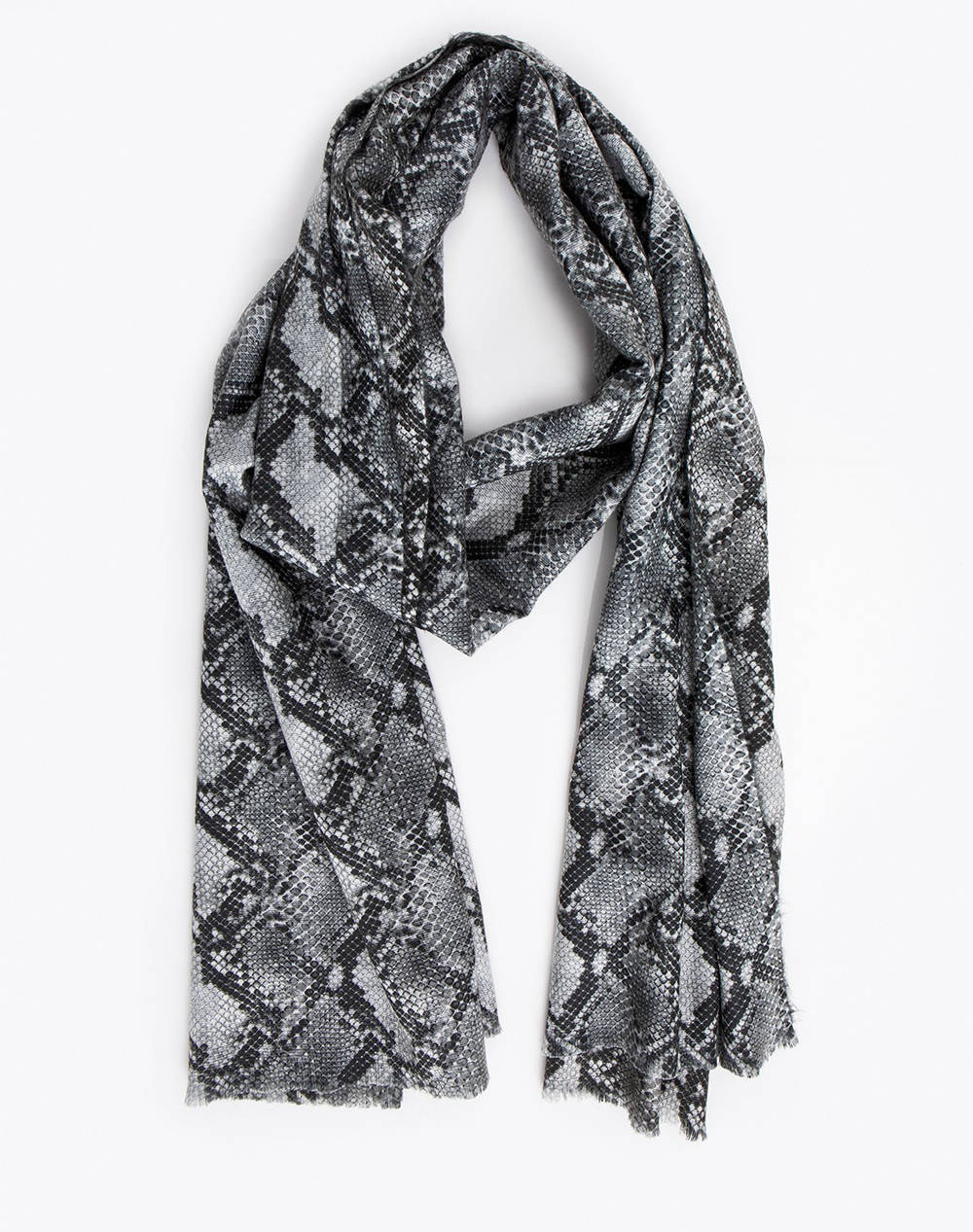 Γυναικείο φουλάρι με animal print και ξέφτια στο τελείωμα. (Σύνθεση: 50% Βισκόζη, 50% Πολυεστέρας)