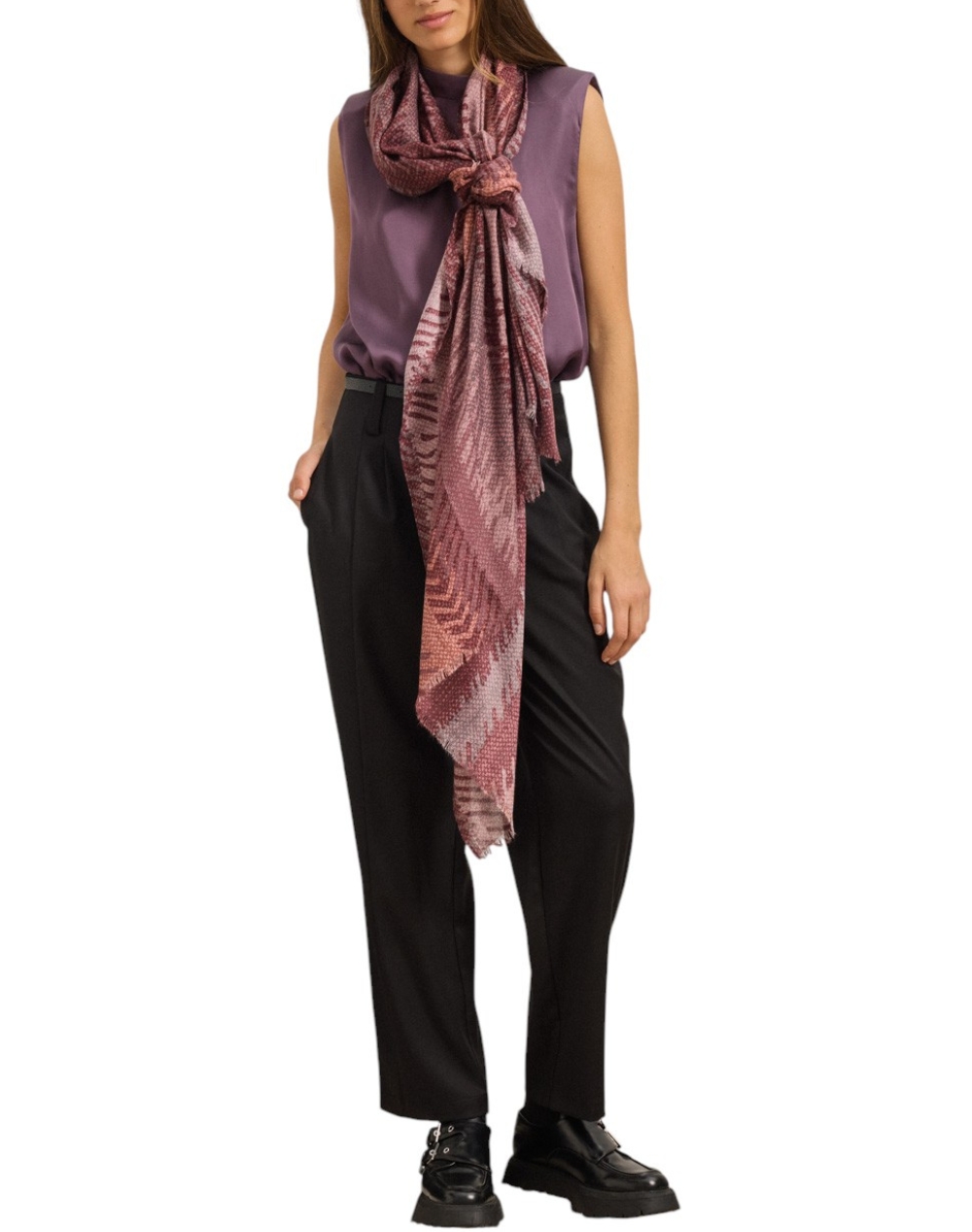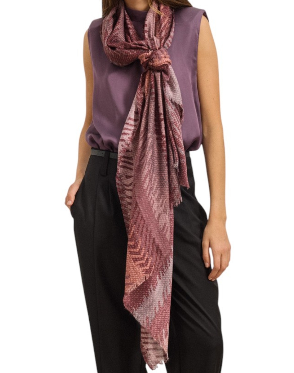 Γυναικείο φουλάρι, με γραμμικό μοτίβο και ξέφτια στο τελείωμα. Διαστάσεις: 1.80 x 0.90 εκ. (Σύνθεση: 50% Βισκόζη, 50% Βαμβάκι)