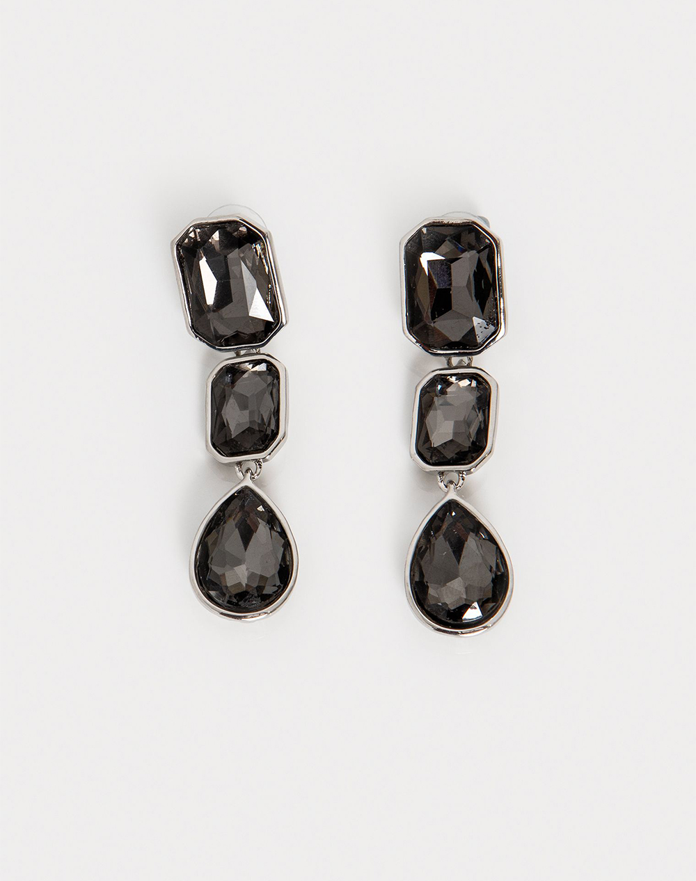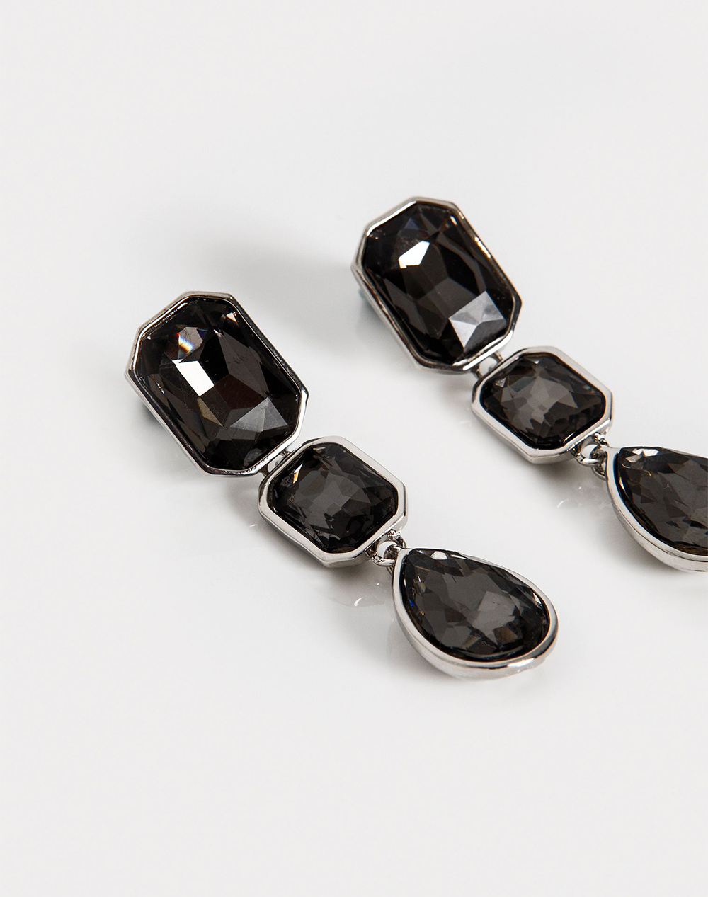 Γυναικεία κρεμαστά σκουλαρίκια με πέτρες διαφορετικού σχήματος και διάφανο κούμπωμα σούστας. (Σύνθεση: 50% Μεταλλικό υλικό, 50% Πολυανθρακικό)