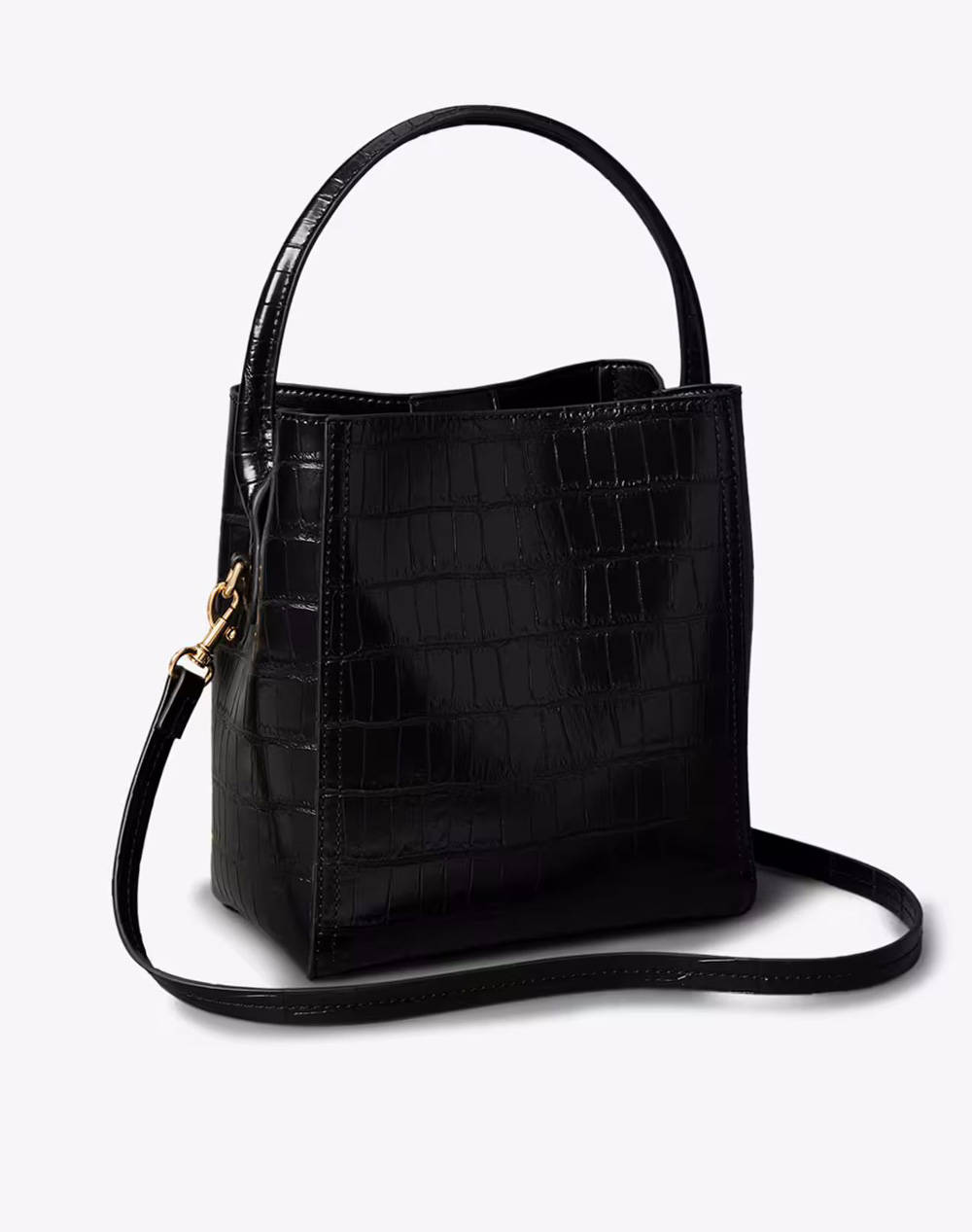 Γυναικεία τσάντα bucket, με croco σχέδιο, μαγνητικό κούμπωμα, μία λαβή χειρός και αποσπώμενο/ρυθμιζόμενο λουράκι ώμου. (Σύνθεση: 100% Πολυουρεθάνη)