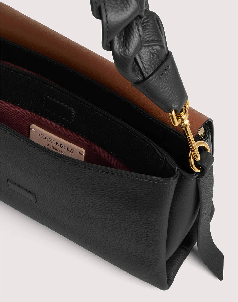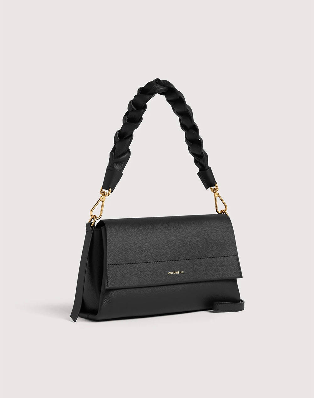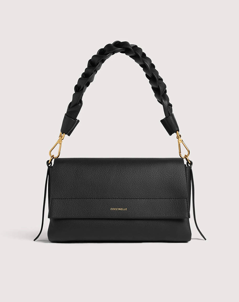 Γυναικεία τσάντα ώμου, με flap κούμπωμα λεπτομέρεια λογότυπο μπροστά και αποσπώμενο λουράκι πλεξούδα. (Σύνθεση: Φυσικό Δέρμα)