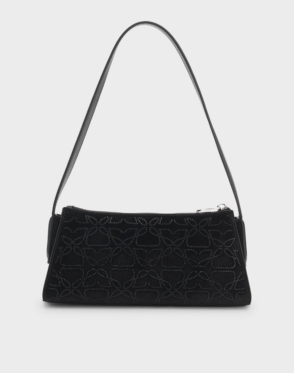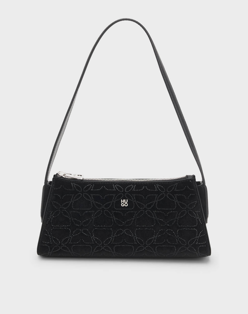 Γυναικεία τσάντα hobo, με βελούδινη υφή, κλείσιμο με φερμουάρ, ένα λουράκι ώμου και strass σχέδια σε όλη την επιφάνεια. (Σύνθεση: 100% Πολυεστέρας)