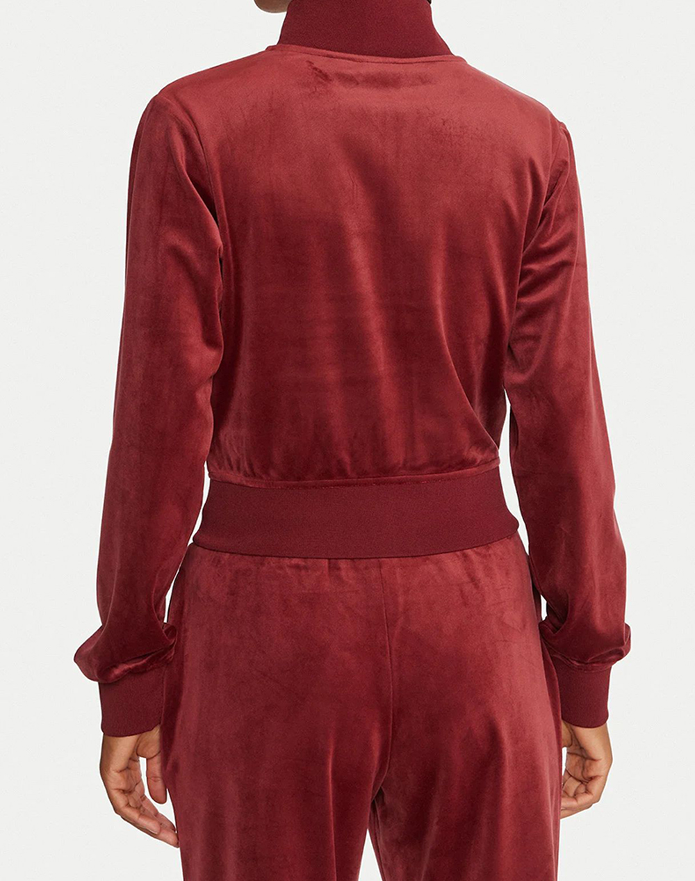 Γυναικεία βελούδινη ζακέτα, σε κανονική γραμμή, με μπροστινές τσέπες, όρθιο γιακά και κλείσιμο κατά μήκος με φερμουάρ.(Σύνθεση: 95% Πολυεστέρας, 5% Ελαστάνη)