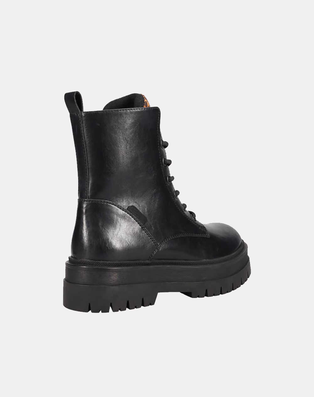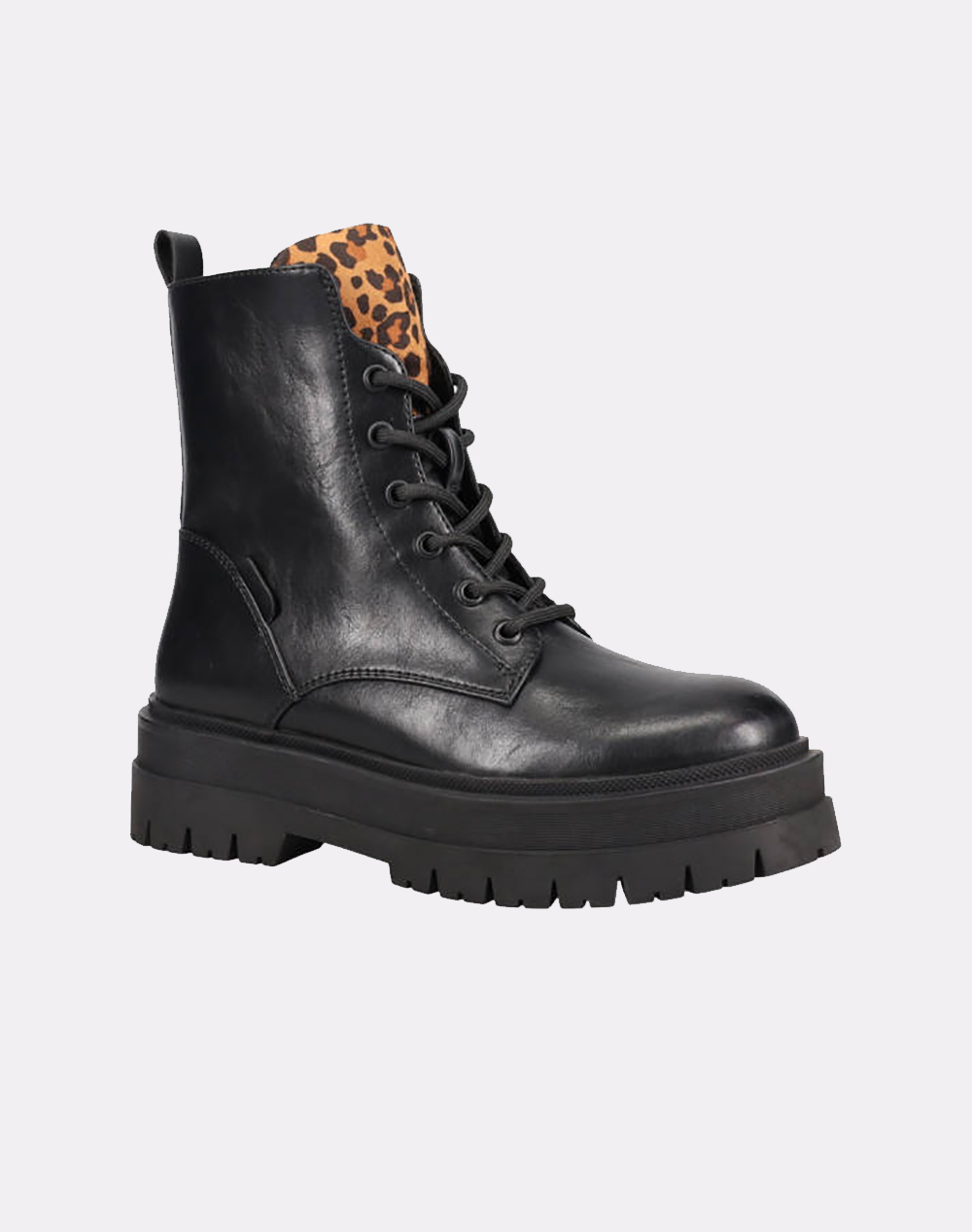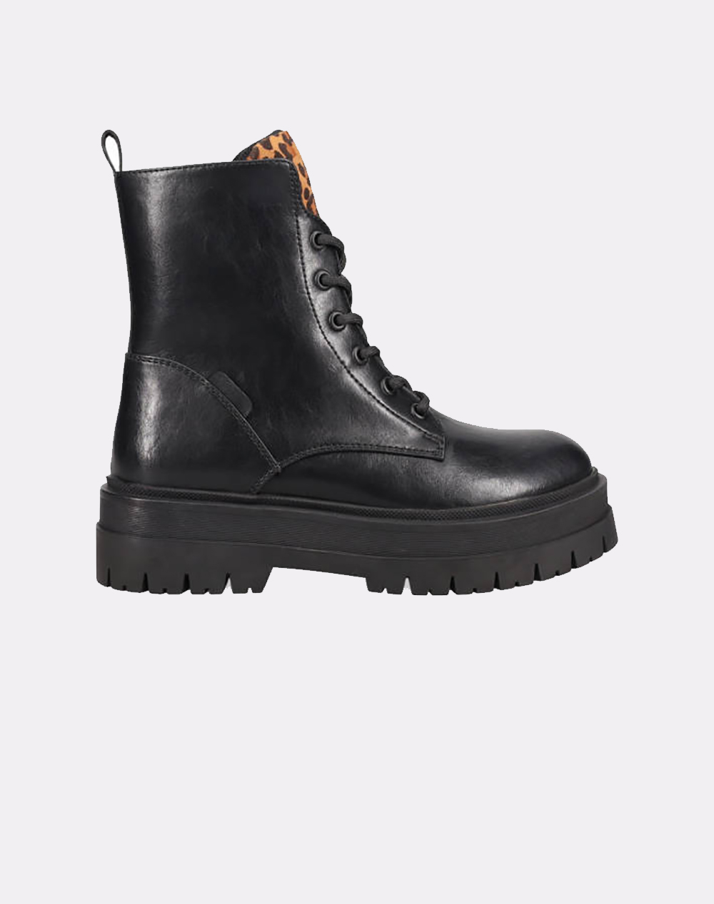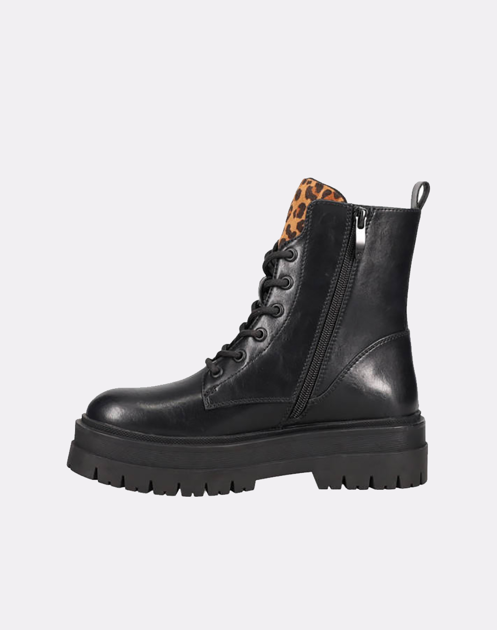 Γυναικεία μποτάκια, με στρογγυλή μύτη, λεοπάρ λεπτομέρεια, τρακτερωτή σόλα, δέσιμο με κορδόνια και φερμουάρ στο πλάι. Ύψος τακουνιού: 5εκ. (Σύνθεση: Συνθετικό Δέρμα)