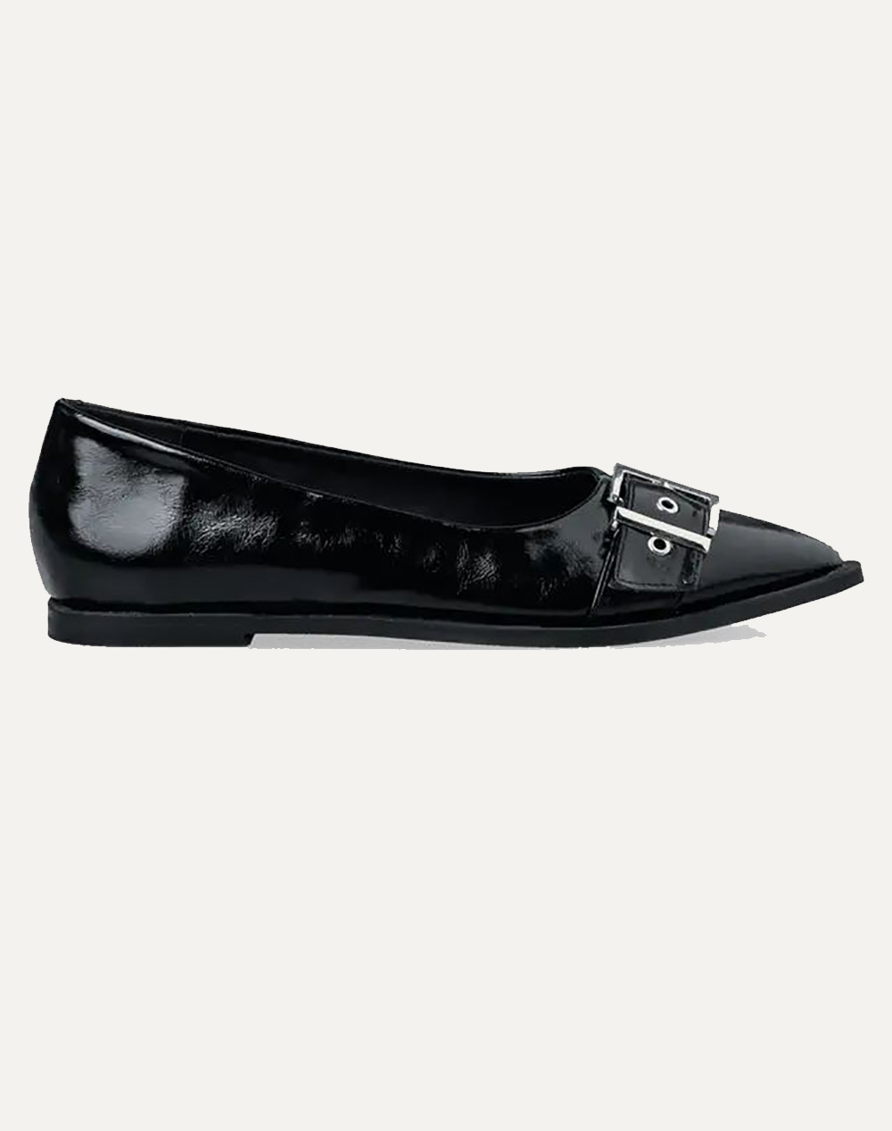 Γυναικείες μπαλαρίνες, με μυτερή μύτη, ελαστική σόλα και αγκράφα μπροστά. (Σύνθεση: Συνθετικό Δέρμα)
