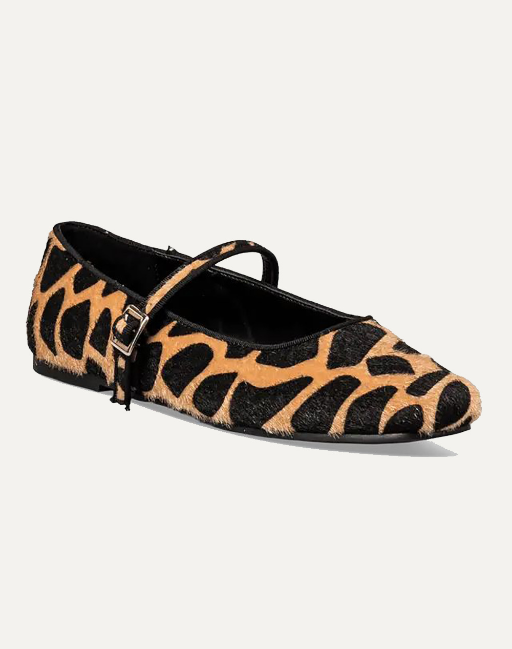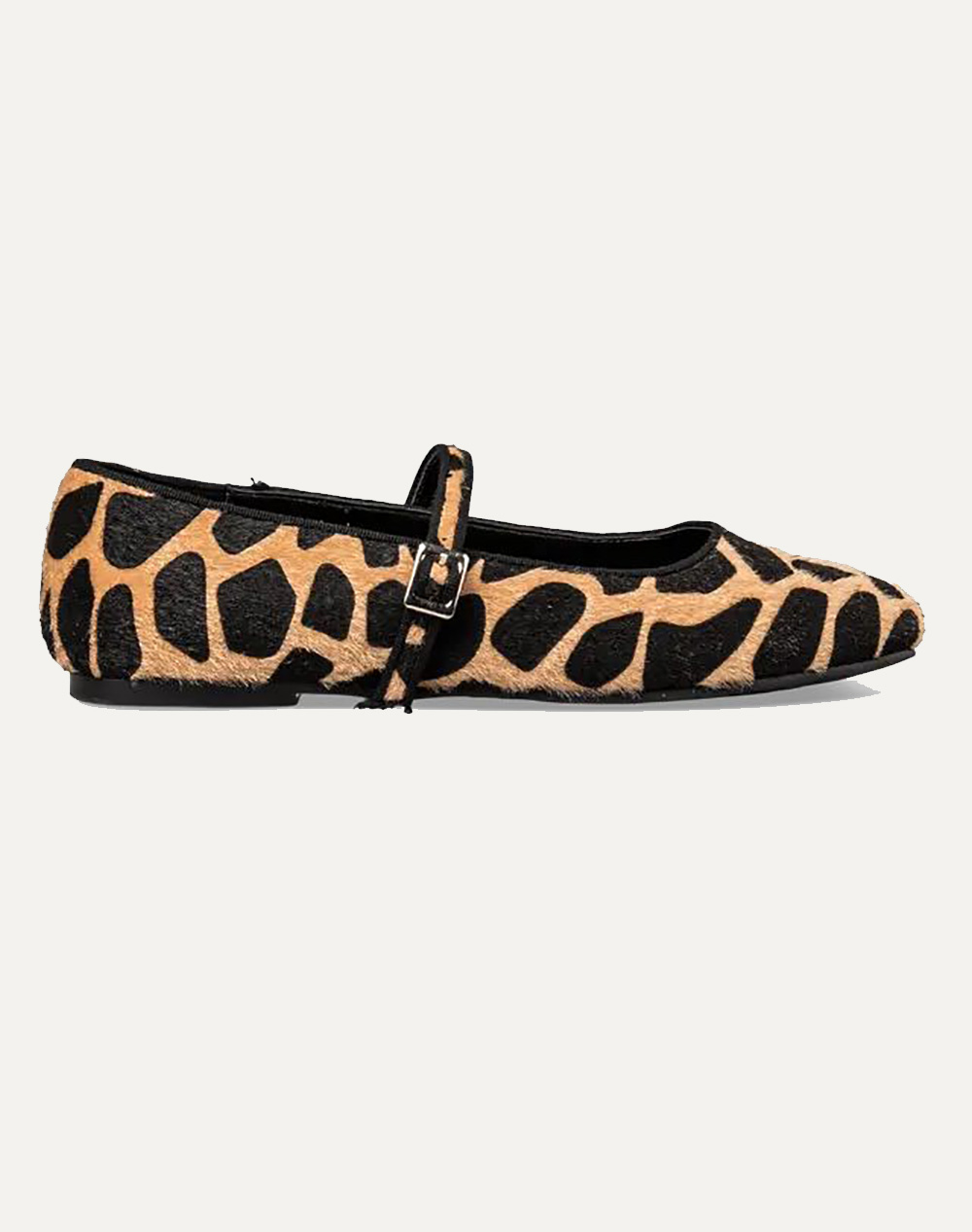 Γυναικείες μπαλαρίνες, με ελαστική σόλα, animal print μοτίβο, δερμάτινο πάτο και ρυθμιζόμενο λουράκι. (Σύνθεση: Συνθετικό Δέρμα)