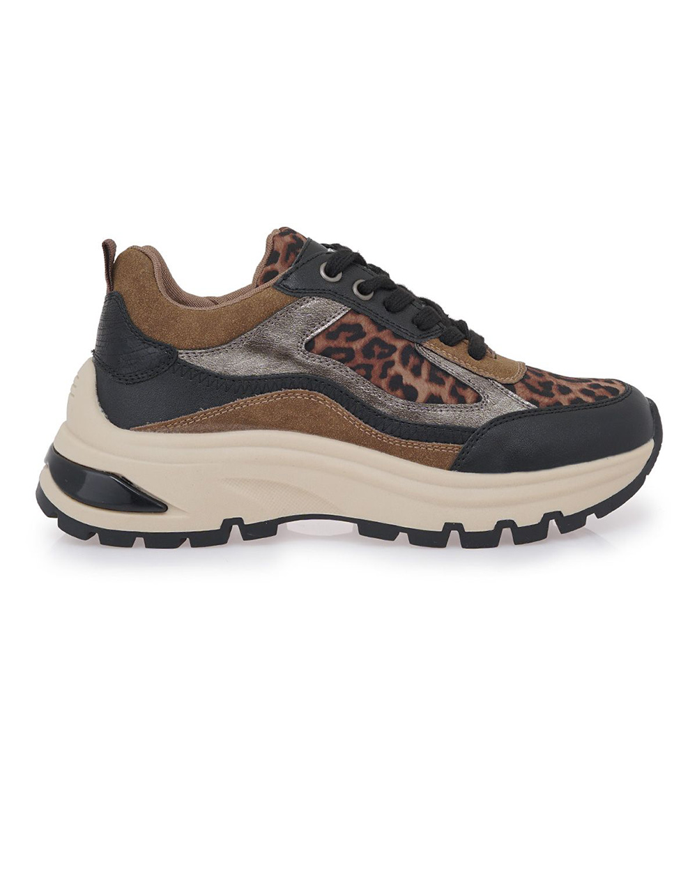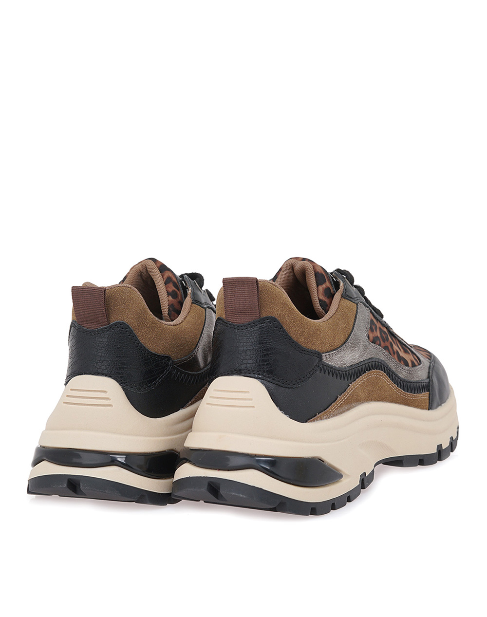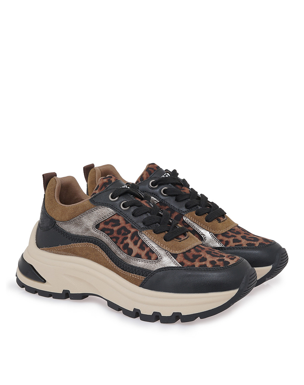 Γυναικεία sneakers, με λεπτομέρεια animal-print, στρογγυλή μύτη και δέσιμο με κορδόνια. Ύψος σόλας: 4εκ. (Σύνθεση: Συνθετικό, Ύφασμα)