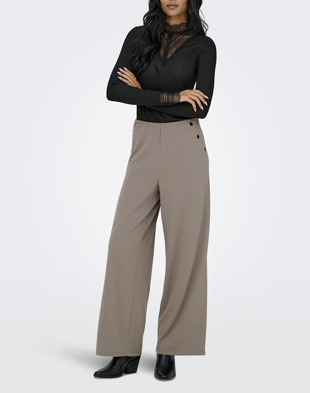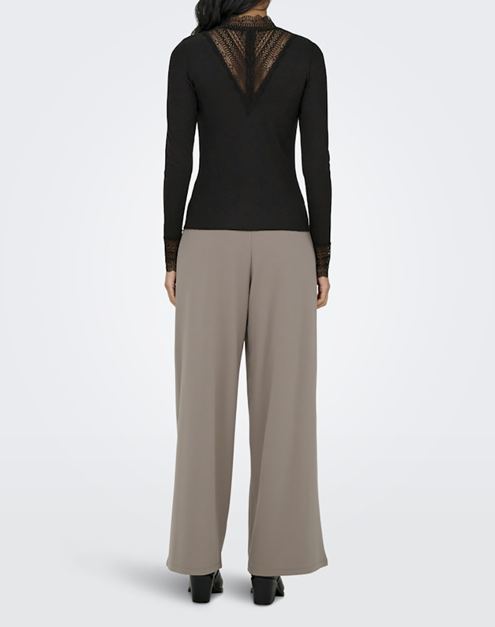 Γυναικεία μπλούζα, σε κανονική γραμμή, μακρυμάνικη, με ψηλή λαιμόκοψη και λεπτομέρειες με δαντέλα. (Σύνθεση: 100% Πολυεστέρας)