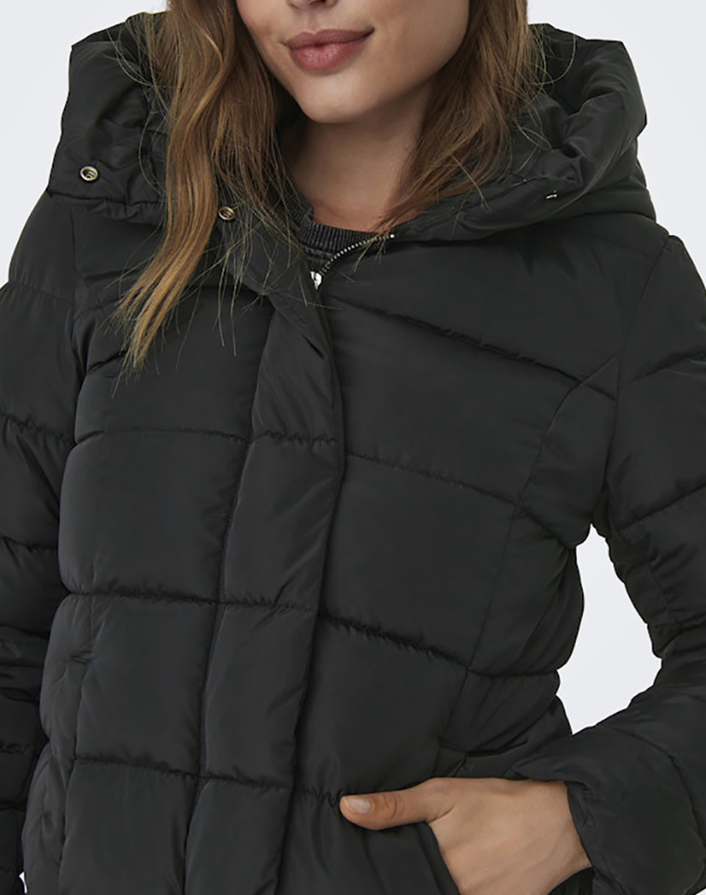 Γυναικείο μπουφάν puffer, σε κανονική γραμμή, με κουκούλα, πλαϊνές τσέπες και κλείσιμο με φερμουάρ και κουμπιά. (Σύνθεση: 67% Πολυεστέρας, 33% Ανακυκλωμένος πολυεστέρας)