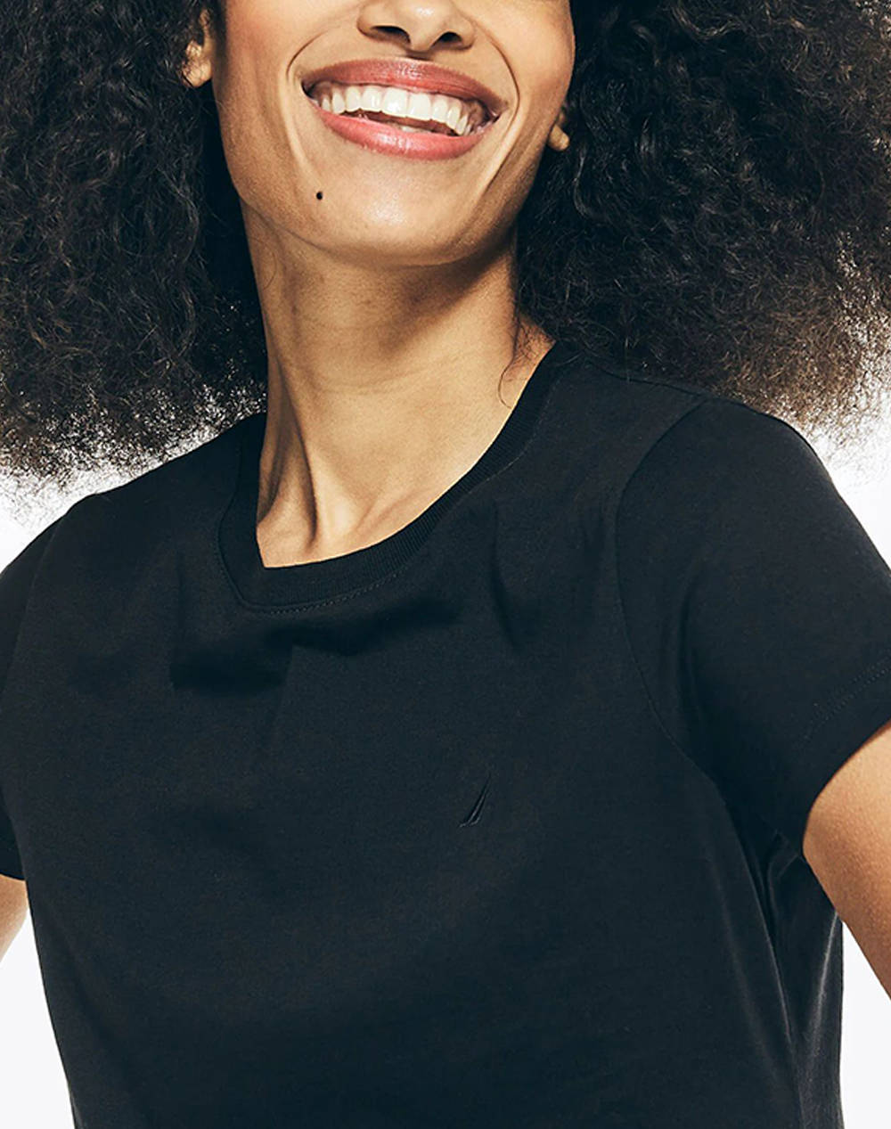 Γυναικείο t-shirt, σε κανονική γραμμή, κοντομάνικο, με στρογγυλή λαιμόκοψη και λογότυπο στον ίδιο τόνο στο στήθος. (Σύνθεση: 60% Βαμβάκι, 40% Ανακυκλωμένος πολυεστέρας)