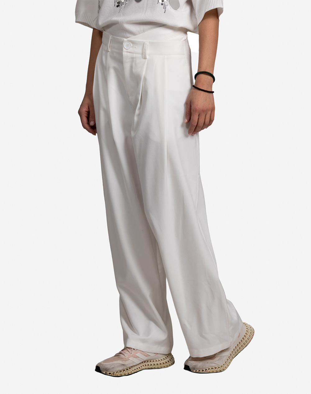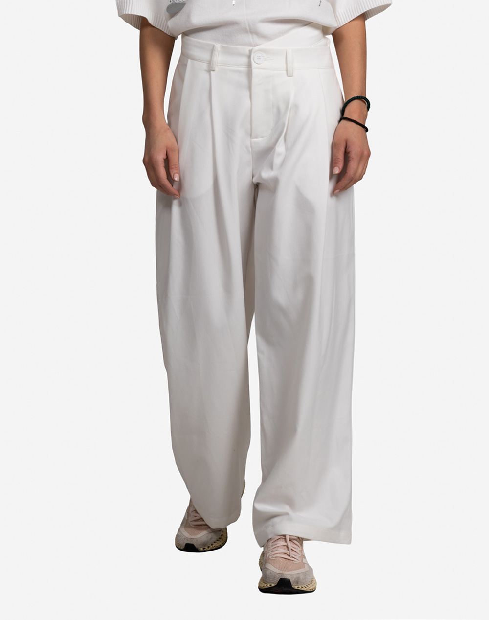 Γυναικείο παντελόνι, σε χαλαρή γραμμή, με πιέτες μπροστά, πλαϊνές τσέπες και κλείσιμο με φερμουάρ και κουμπί. (Σύνθεση: 95% Πολυεστέρας, 5% Ελαστάνη)