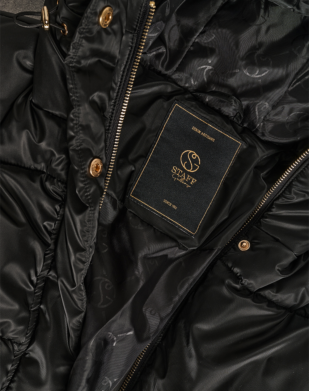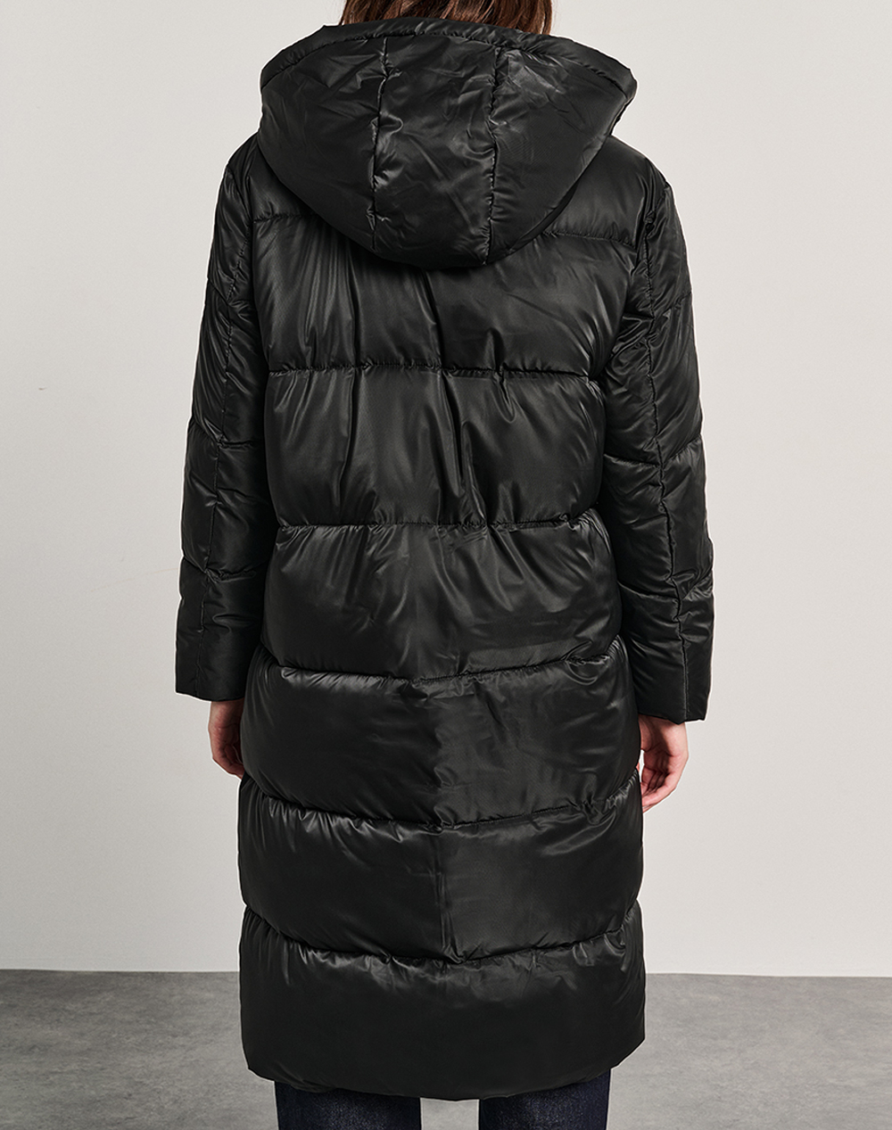 Γυναικείο μακρύ μπουφάν από συνθετικό ύφασμα.