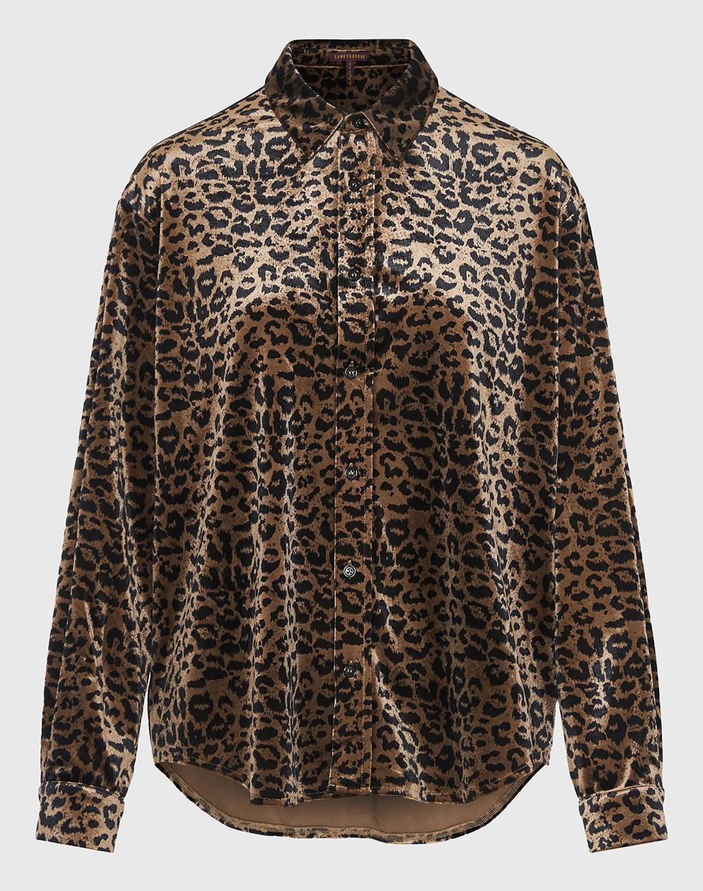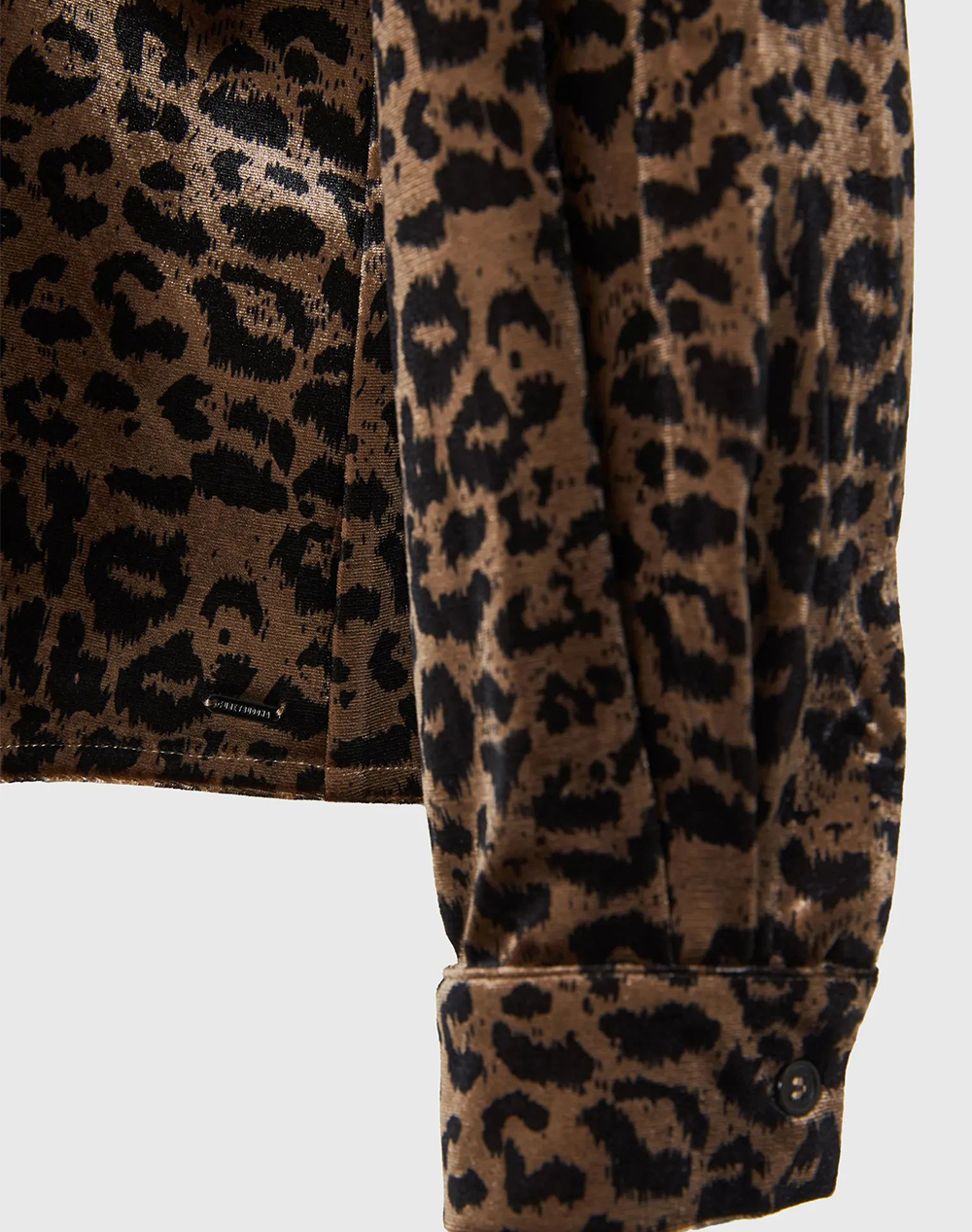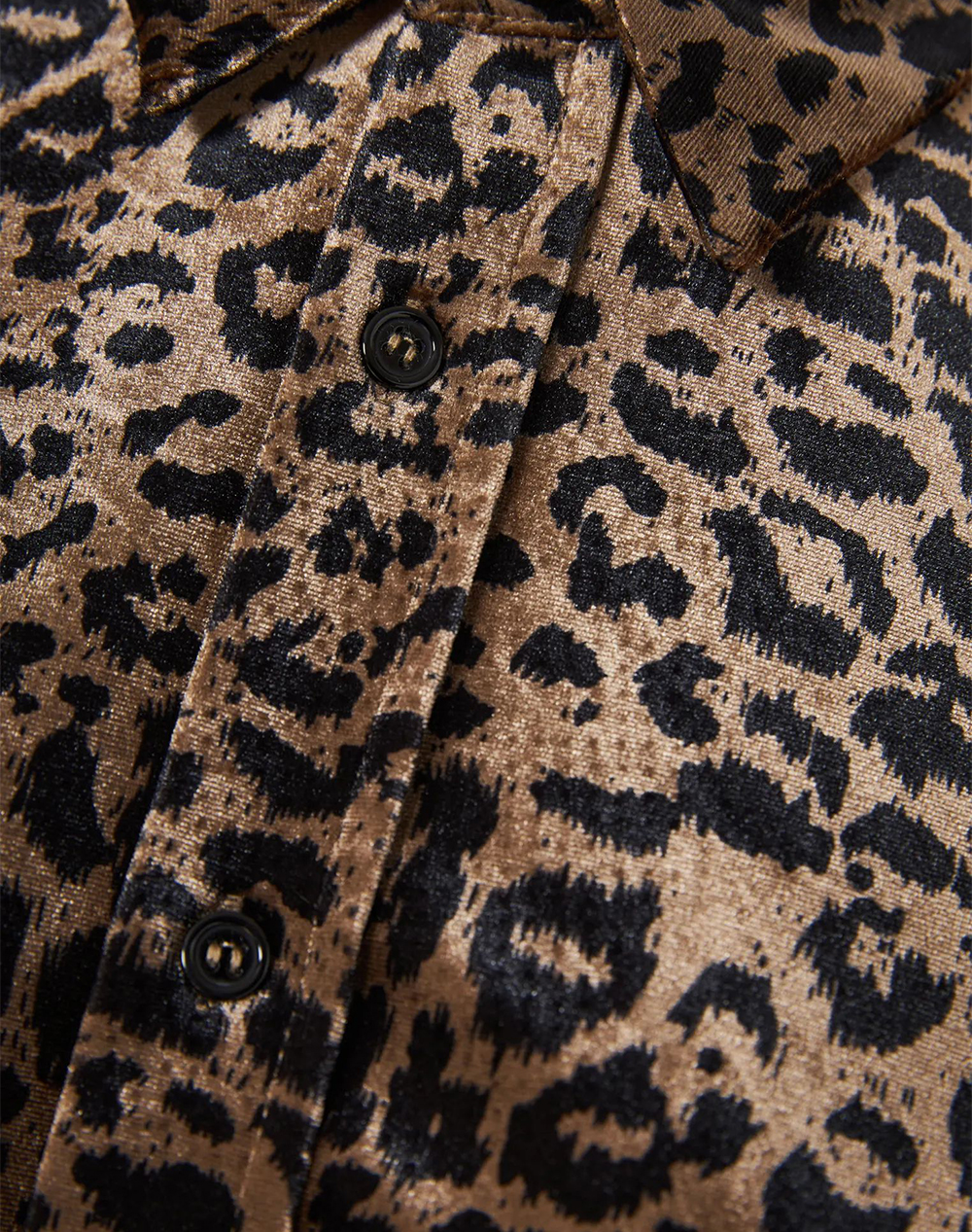 Γυναικείο πουκάμσο, λεοπάρ, βελουτέ, μακρυμάνικο, σε κανονική γραμμή, με κλασικό γιακά και κλείσιμο με κουμπιά. (Σύνθεση: 94% Πολυεστέρας, 6% Ελαστομερής Πολυουρεθάνη)