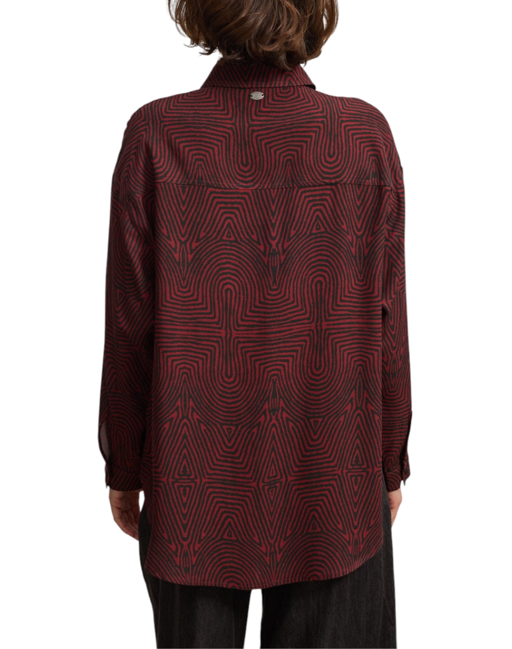 Γυναικείο πουκάμισο, σε κανονική γραμμή, μακρυμάνικο, με γεωμετρικό print, κλασικό γιακά, τσέπες στο στήθος και μπροστινό κλείσιμο με κουμπιά. (Σύνθεση: 100% Βισκόζη)