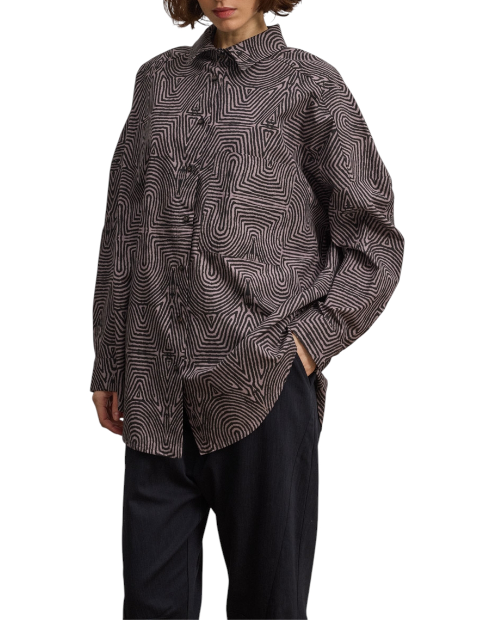 Γυναικείο πουκάμισο, σε κανονική γραμμή, μακρυμάνικο, με γεωμετρικό print, κλασικό γιακά, τσέπη στο στήθος και μπροστινό κλείσιμο με κουμπιά. (Σύνθεση: 100% Βαμβάκι)