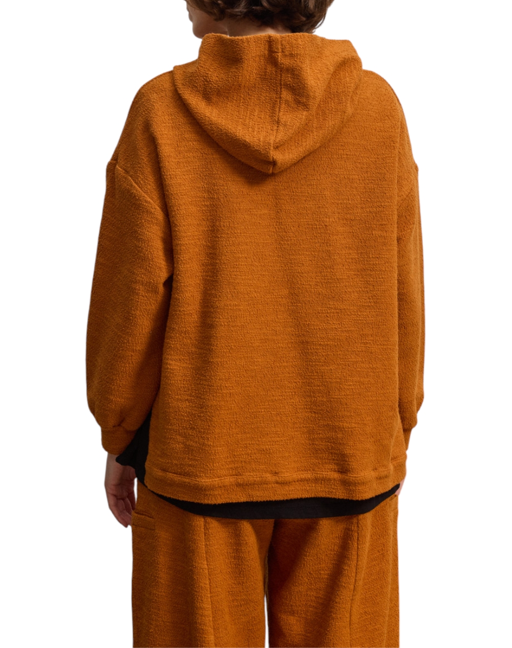 Γυναικεία μπλούζα φούτερ, μακρυμάνικη, με μπουκλέ υφή, ανοίγματα στα πλαϊνά και κουκούλα. (Σύνθεση: 88%Βαμβάκι,12% Πολυεστέρας)