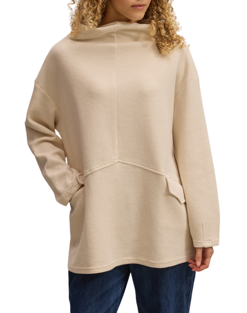 Γυναικεία μπλούζα, σε άνετη γραμμή, μακρυμάνικη, με waffle υφή, όρθιο γιακά με χαλαρό ζιβάγκο και πλάγιες τσέπες. (Σύνθεση: 100% Βαμβάκι)