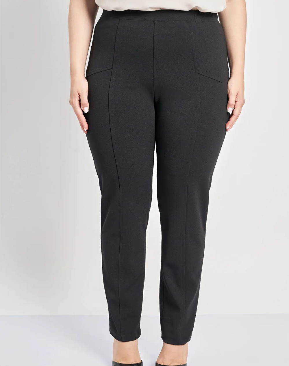 Γυναικείο παντελόνι cigarette, σε κανονική γραμμή, ελαστικό, μονόχρωμο, μεσοκάβαλο, με ελαστική μέση και κεντρική ραφί στο πόδι. (Σύνθεση: 97% Πολυεστέρας, 3% Σπάντεξ)