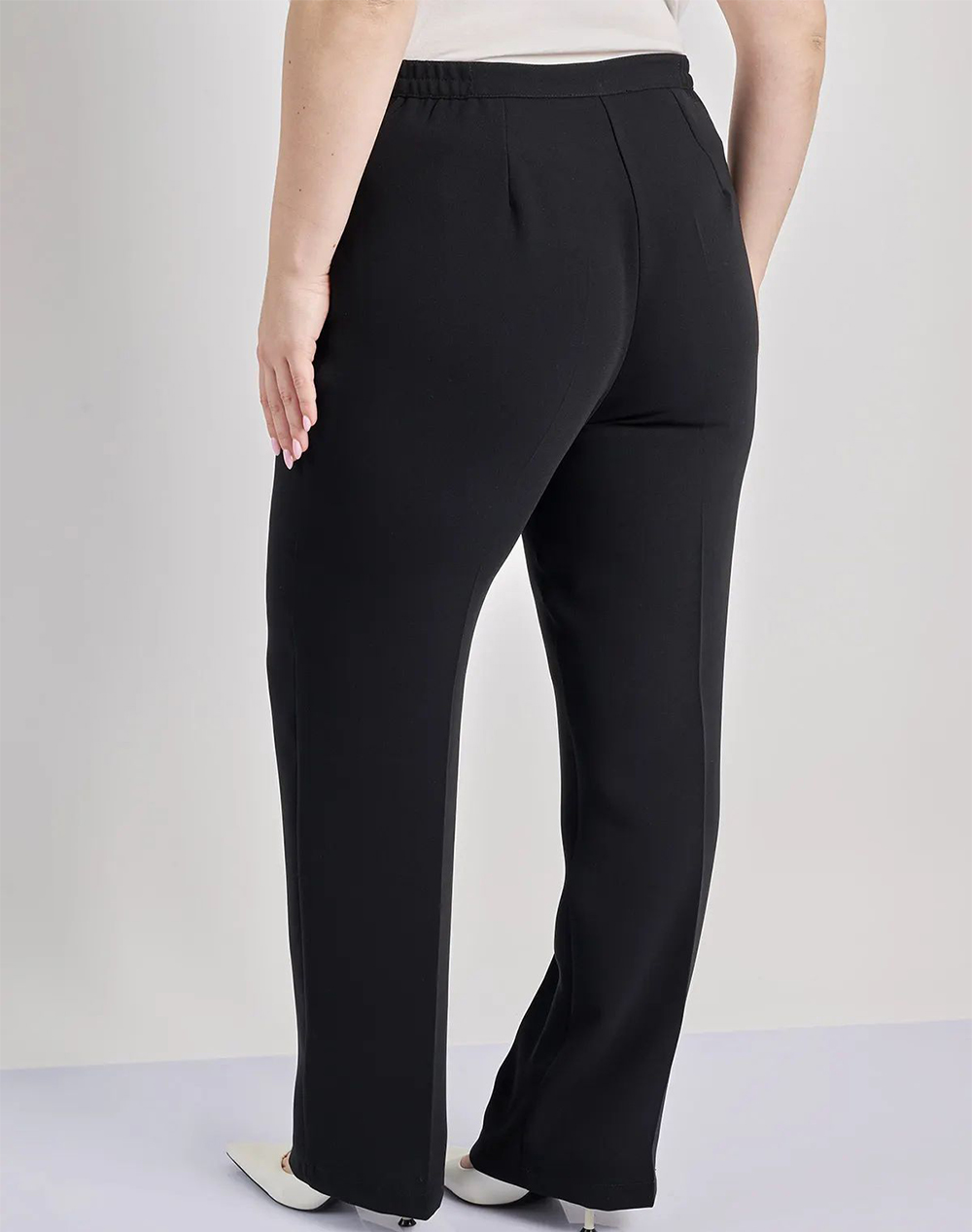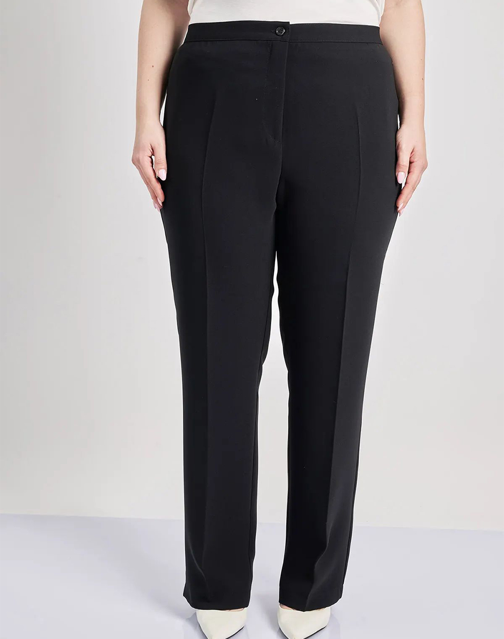 Γυναικείο παντελόνι, μονόχρωμο, σε ίσια γραμμή, με ελαστική μέση και κλείσιμο με φερμουάρ και κουμπί. (Σύνθεση: 61% Πολυεστέρας, 33% Ραιγιόν, 6% Σπάντεξ)