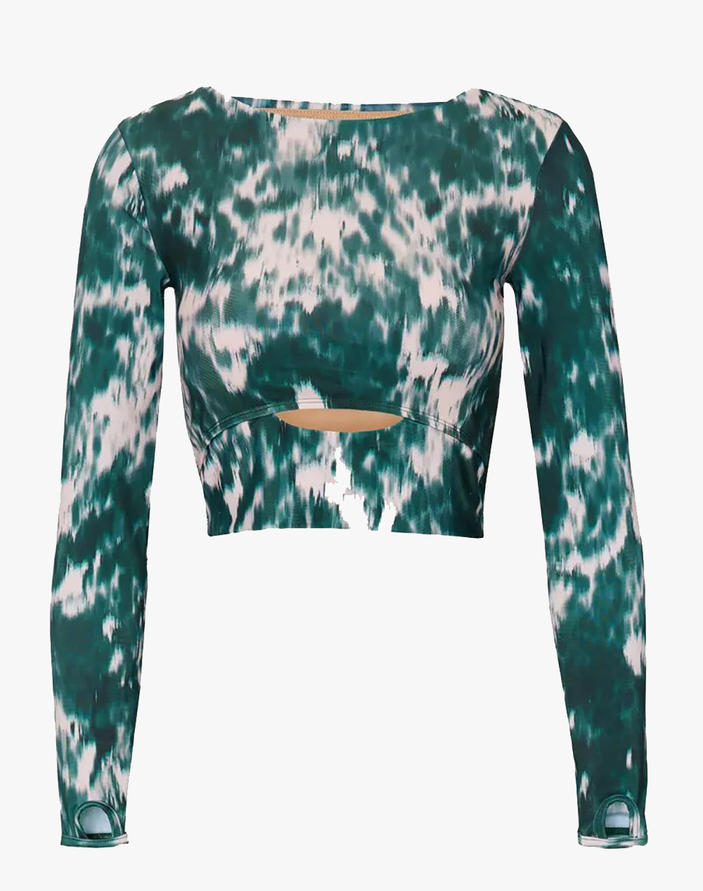 Γυναικεία αθλητική μπλούζα, σε στενή γραμμή, μακρυμάνικη, με crop μήκος και cut out μπροστά. (Σύνθεση: 76% Ανακυκλωμένος πολυεστέρας, 24% Ελαστάνη)