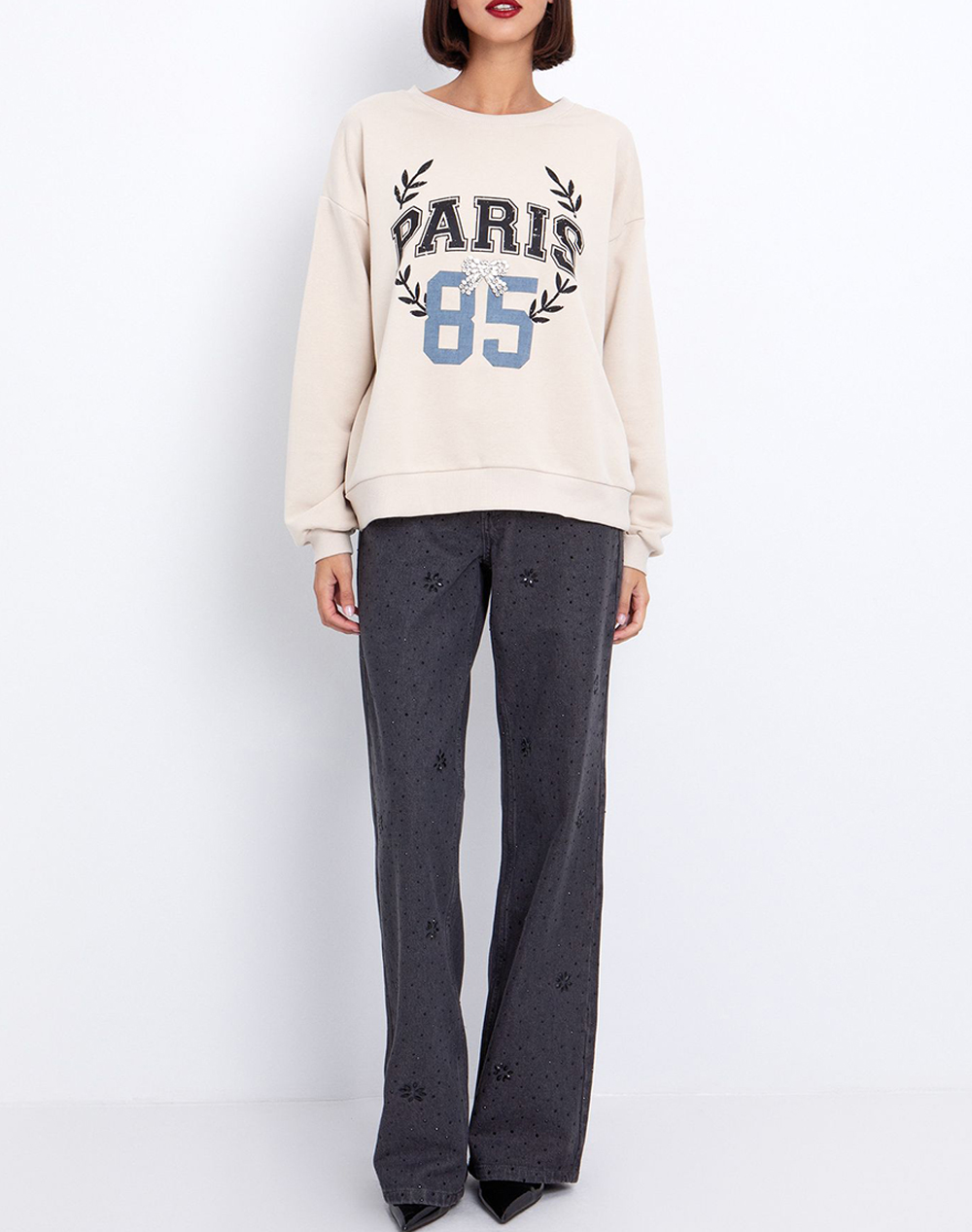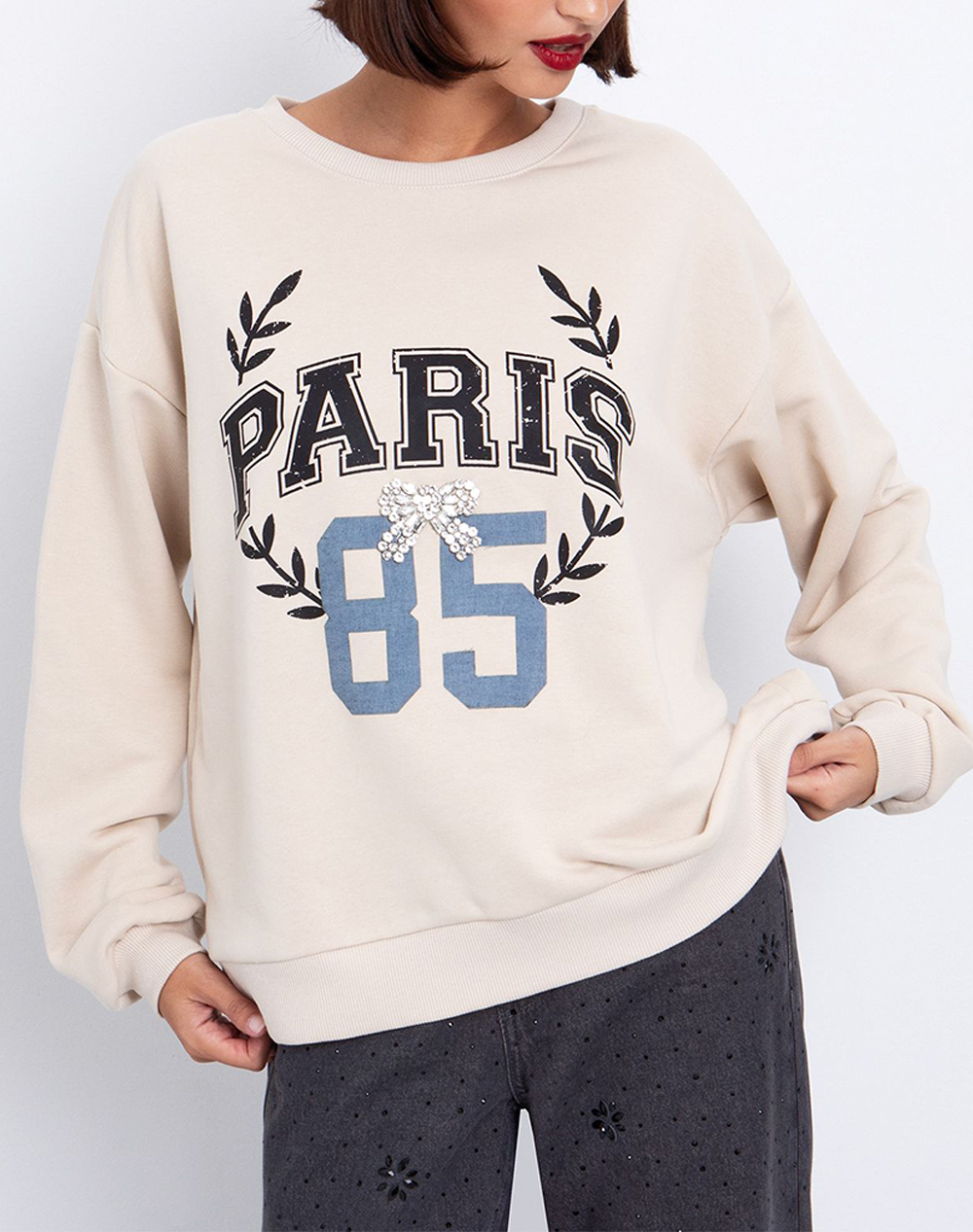 Γυναικείο φούτερ, σε χαλαρή γραμμή, μακρυμάνικο, με στρογγυλή λαιμόκοψη και μπροστινό τύπωμα. (Σύνθεση: 65% Βαμβάκι, 35% Πολυεστέρας)