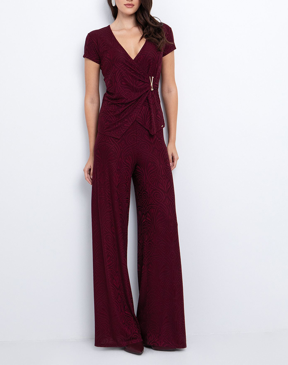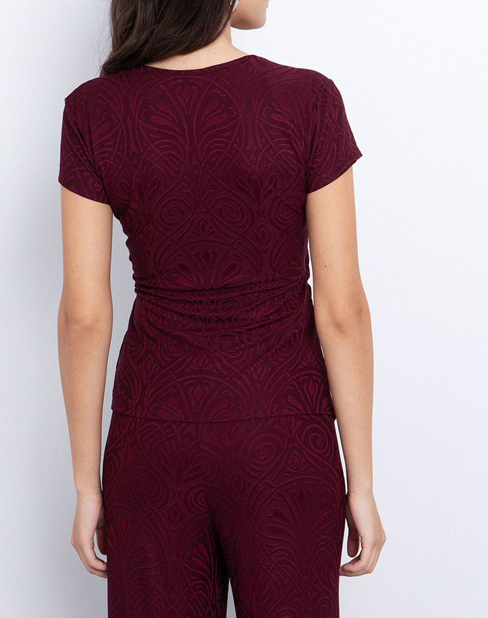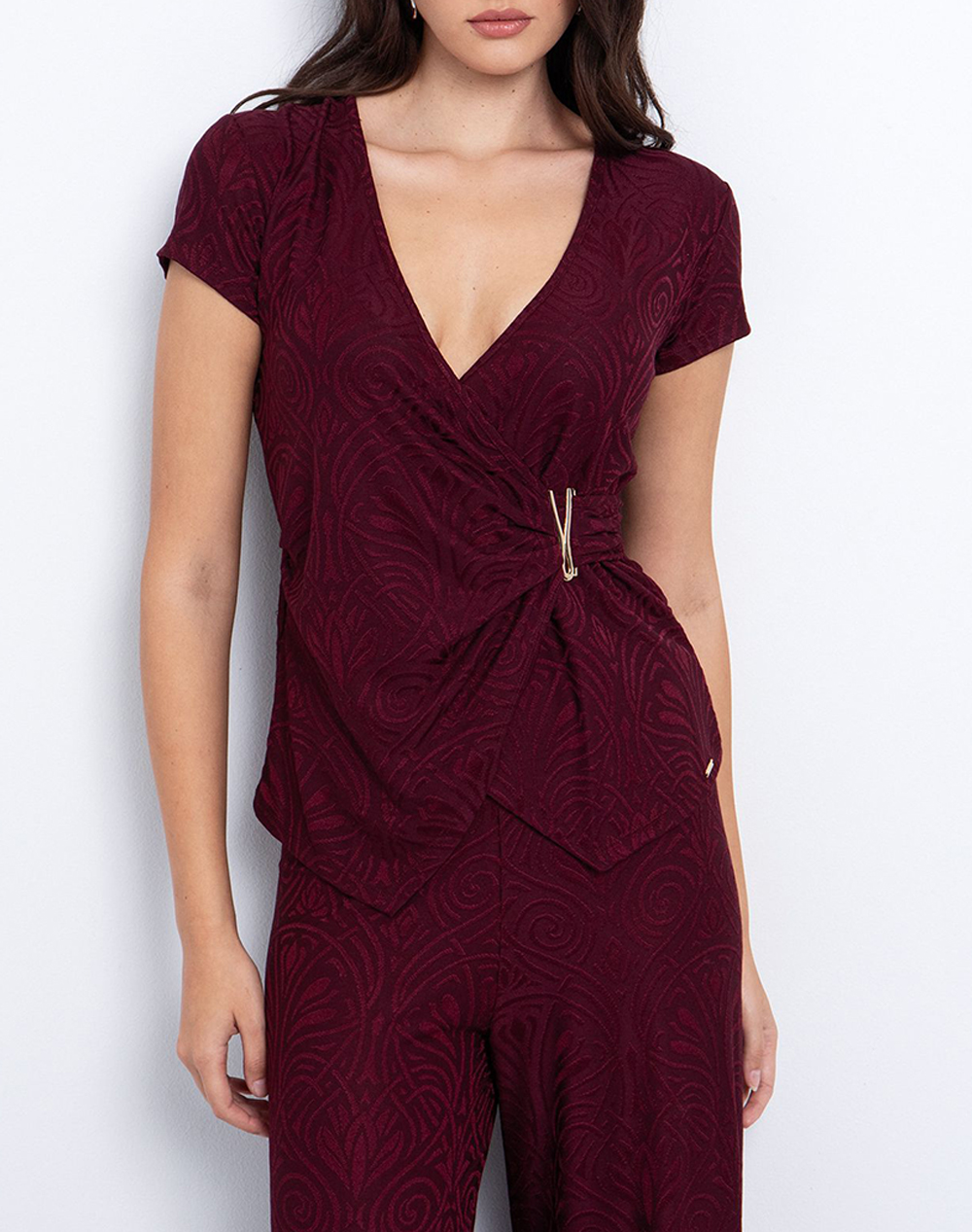 Γυναικεία μπλούζα, σε κανονική γραμμή, κοντομάνικη, με λαιμόκοψη V και μεταλλικό στοιχείο. (Σύνθεση: 49% Βισκόζη, 42% Πολυεστέρας, 9% Ελαστάνη)