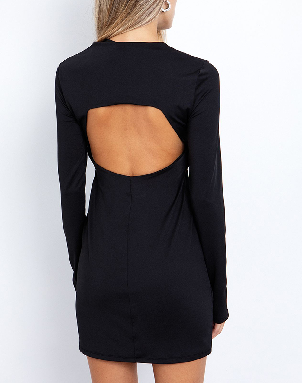 Γυναικείo bodycon μίνι φόρεμα, μακρυμάνικο, με cut out πλάτη στρογγυλή λαιμόκοψη. (Σύνθεση: 90% Πολυεστέρας, 10% Ελαστάνη)
