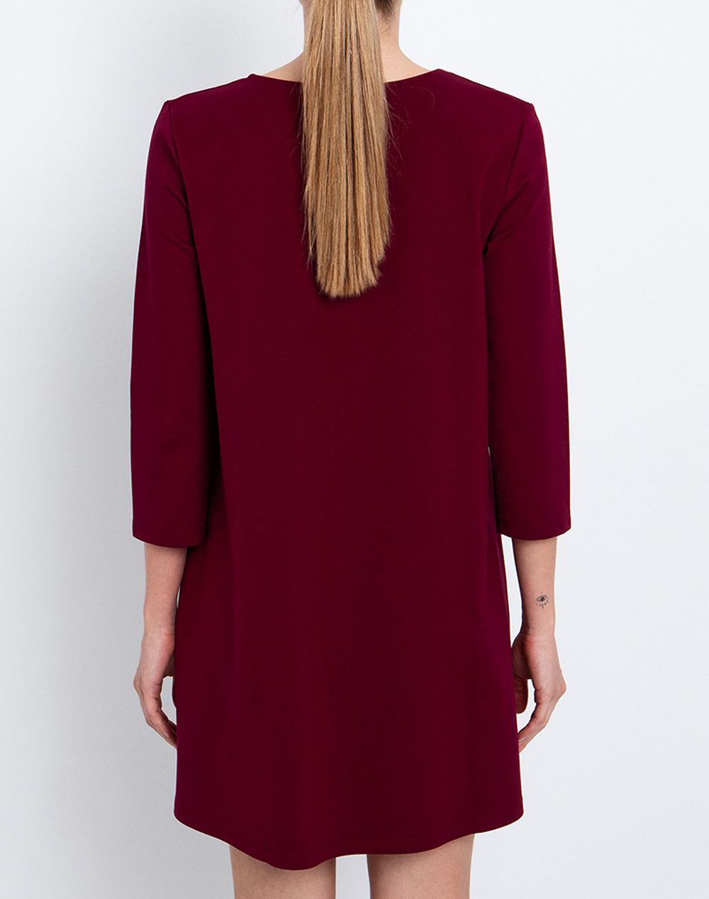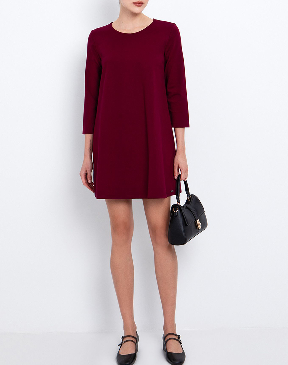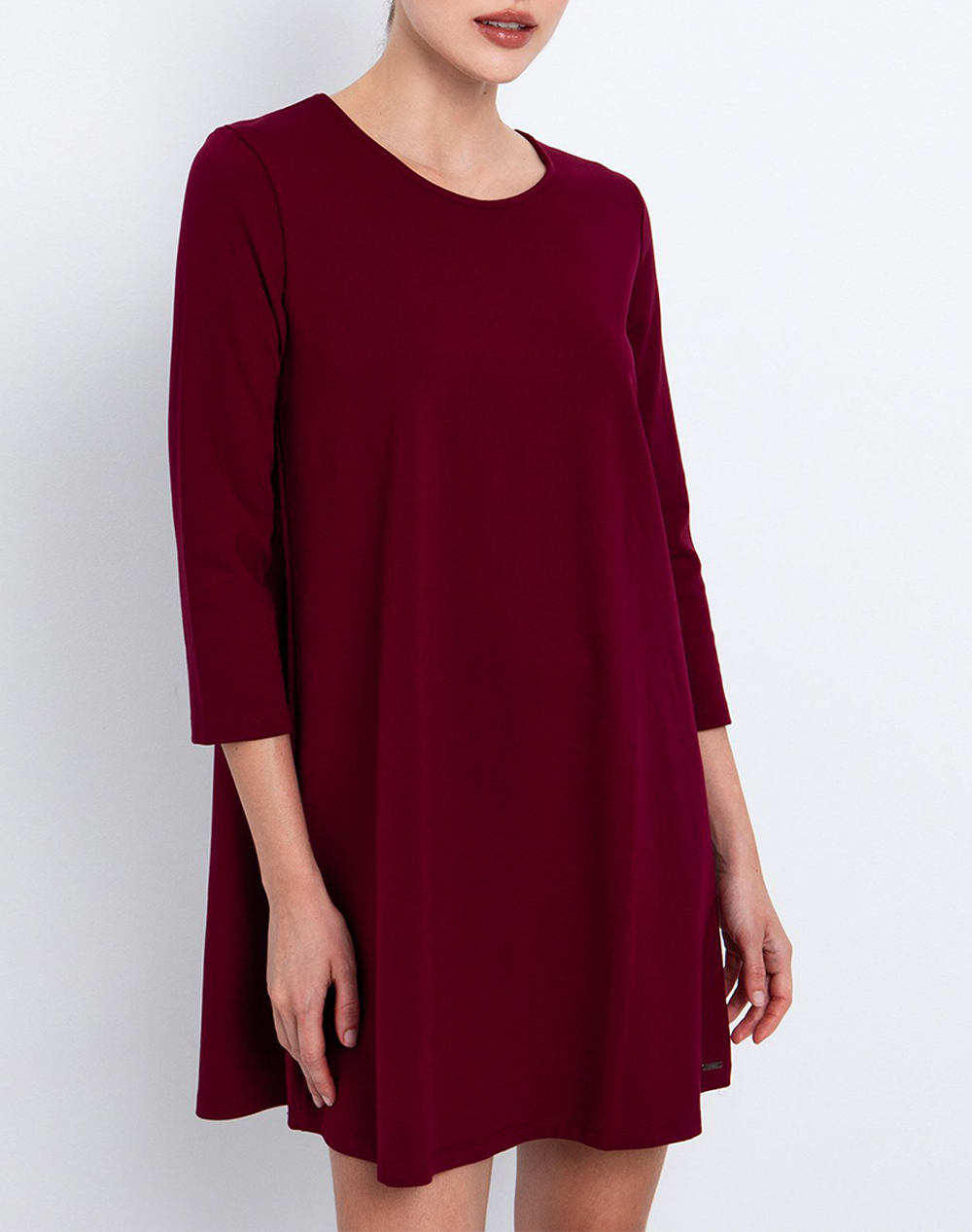 Γυναικείo μίνι φόρεμα, σε άνετη γραμμή, μονόχρωμο, με μανίκι 3/4, στρογγυλή λαιμόκοψη και κλος τελείωμα. (Σύνθεση: 68% Βισκόζη, 27% Πολυαμίδιο, 5% Ελαστάνη)