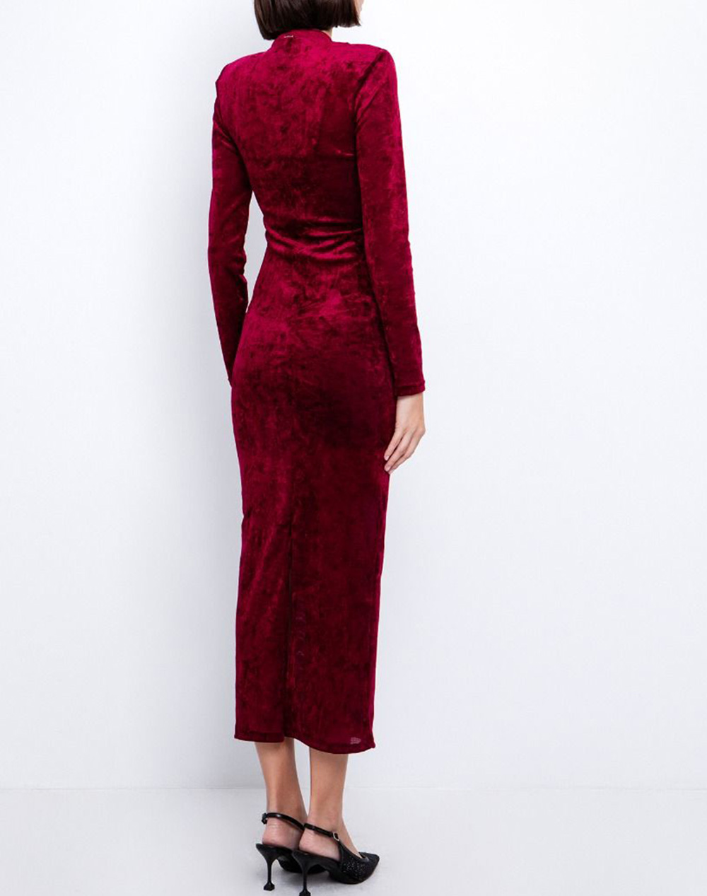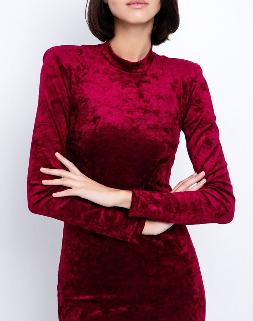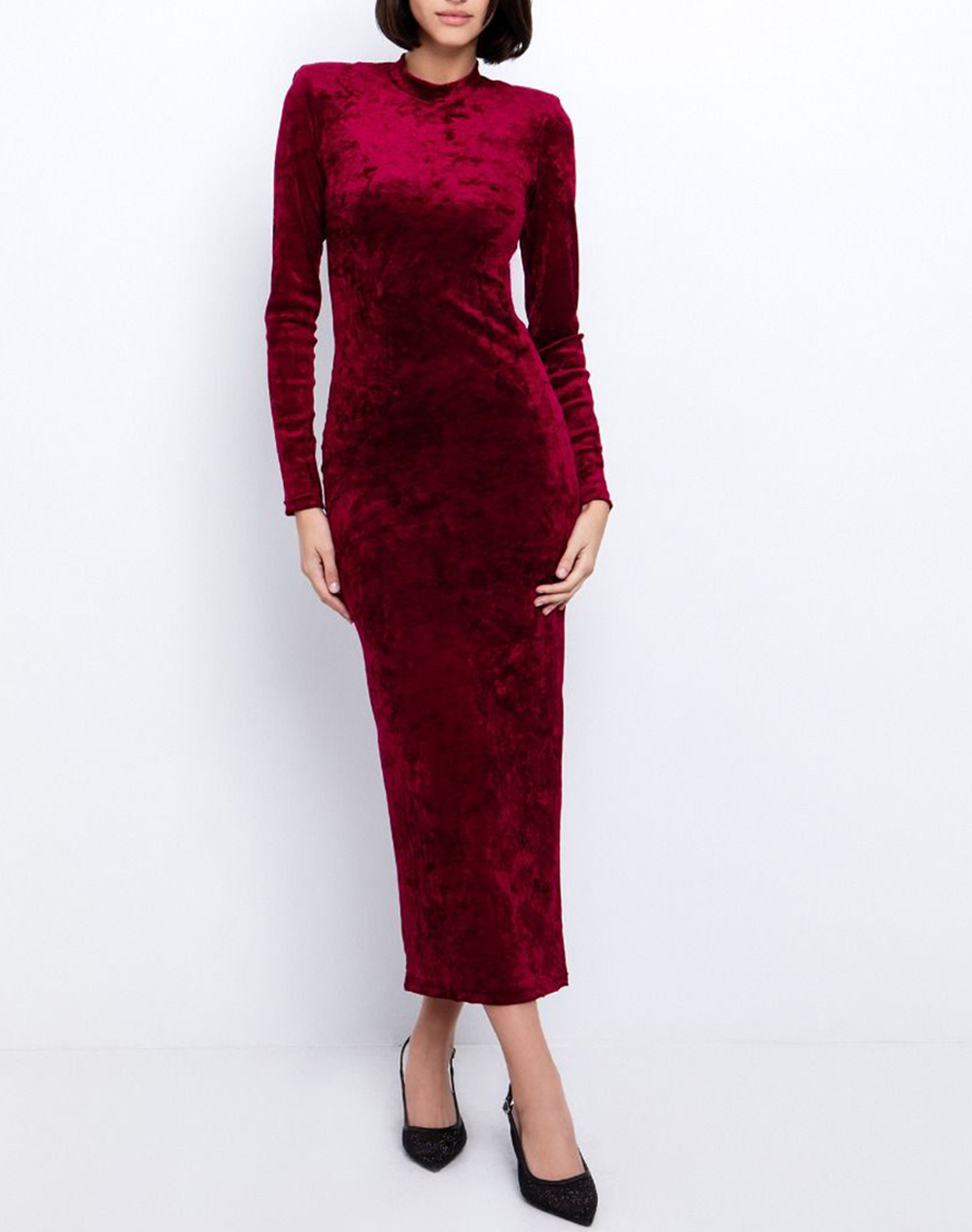 Γυναικείο φόρεμα, σε εφαρμοστή γραμμή, με βελούδινη υφή, βάτες στους ώμους και κλείσιμο με κρυφό φερμουάρ στη πλάτη. (Σύνθεση: 90% Πολυεστέρας, 10% Ελαστάνη)