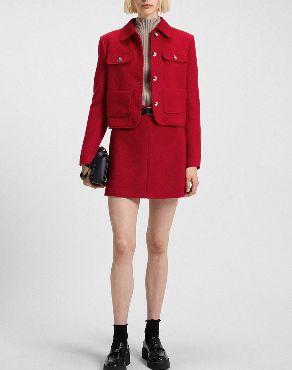 Γυναικεία mini φούστα από σύμμεικτο μαλλίνο ύφασμα.
