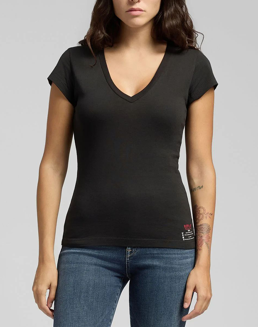 Γυναικείο t-shirt, σε στενή γραμμή, με λαιμόκοψη V, μονόχρωμο, κοντομάνικο. (Σύνθεση: 100% Βαμβάκι)