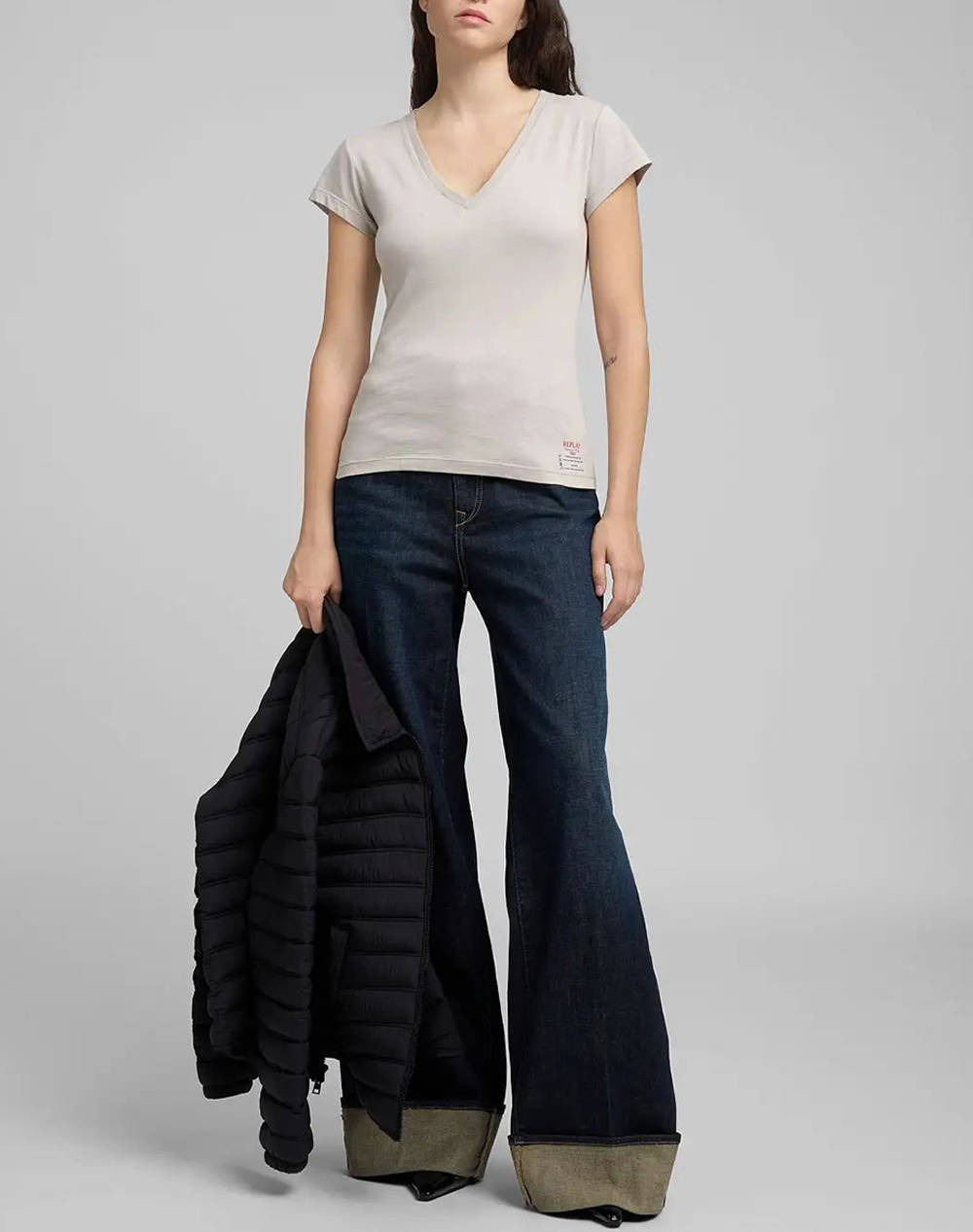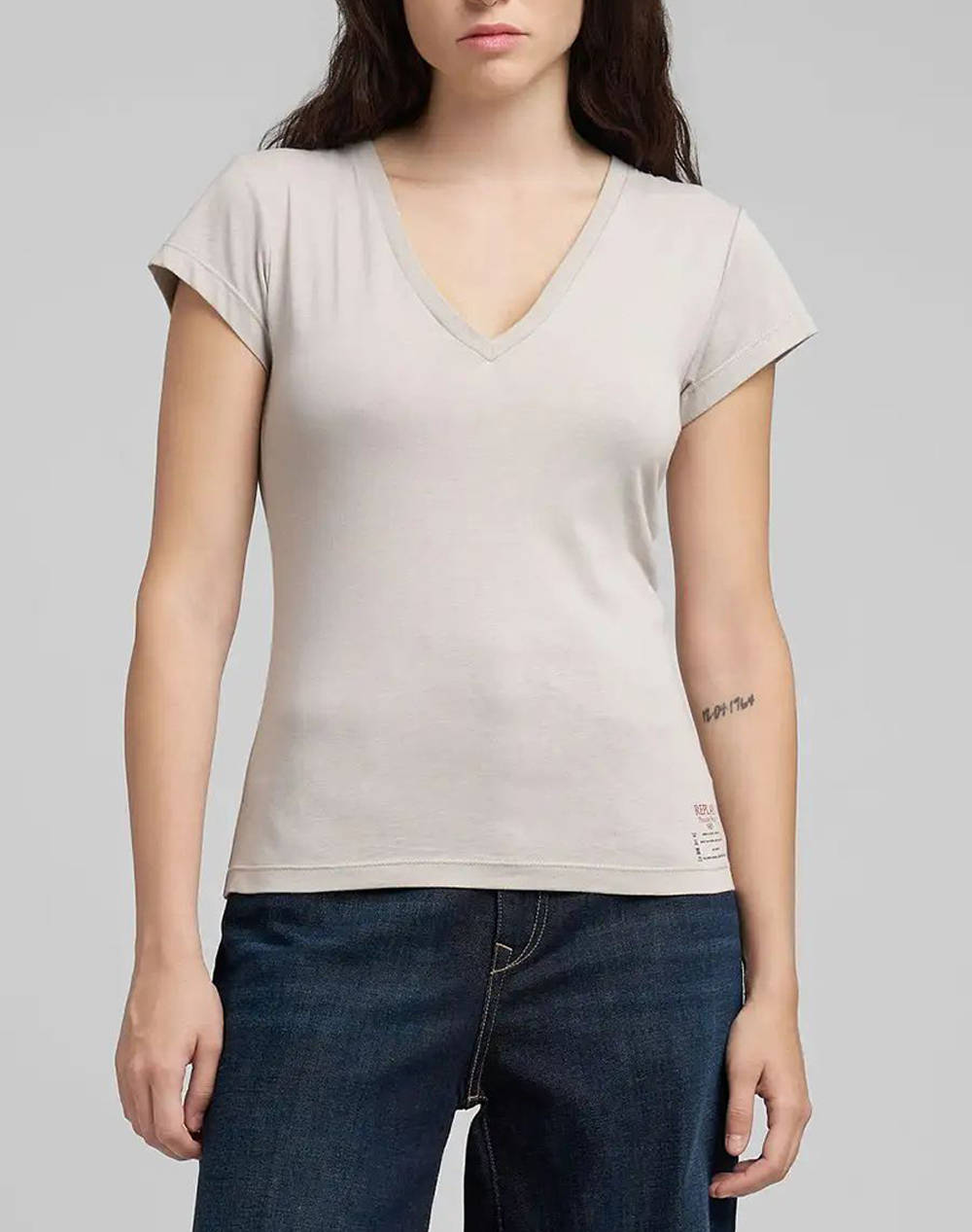 Γυναικείο t-shirt, σε στενή γραμμή, με λαιμόκοψη V, μονόχρωμο, κοντομάνικο. (Σύνθεση: 100% Βαμβάκι)