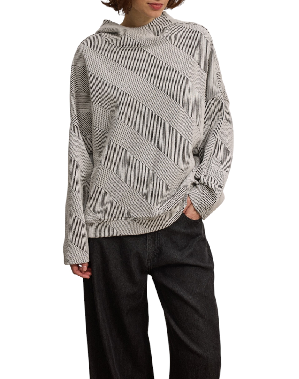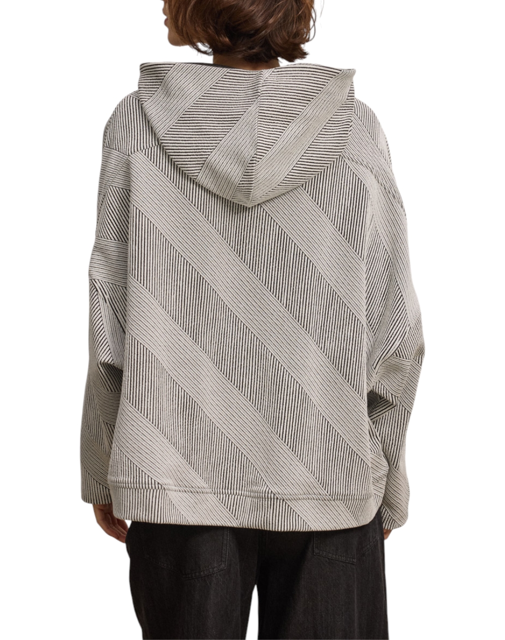 Γυναικεία φούτερ μπλούζα, με διαγώνιο ριγέ τύπωμα, εξωτερικές ραφές και κουκούλα. (Σύνθεση: 40% Βισκόζη, 48% Πολυεστέρας, 12% Ελαστάνη)