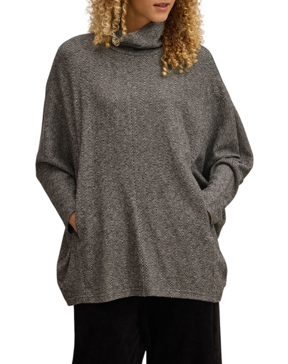 Γυναικεία μπλούζα, oversized, με ψαροκόκαλο print, χαλαρό ζιβάγκο και κρυφές πλαϊνές τσέπες. (Σύνθεση: 80% Βισκόζη, 15% Πολυεστέρας, 5% Ελαστάνη)