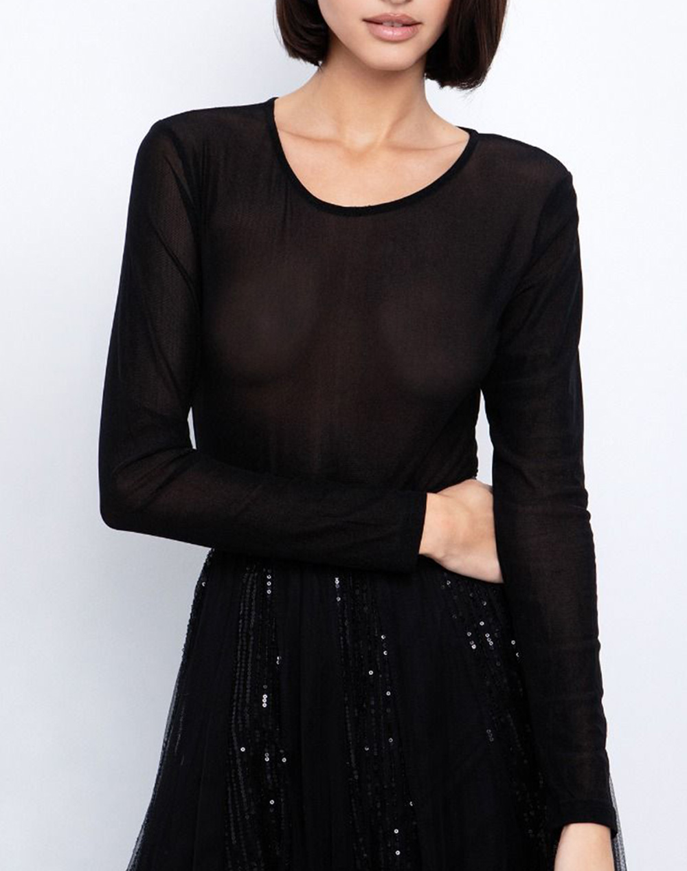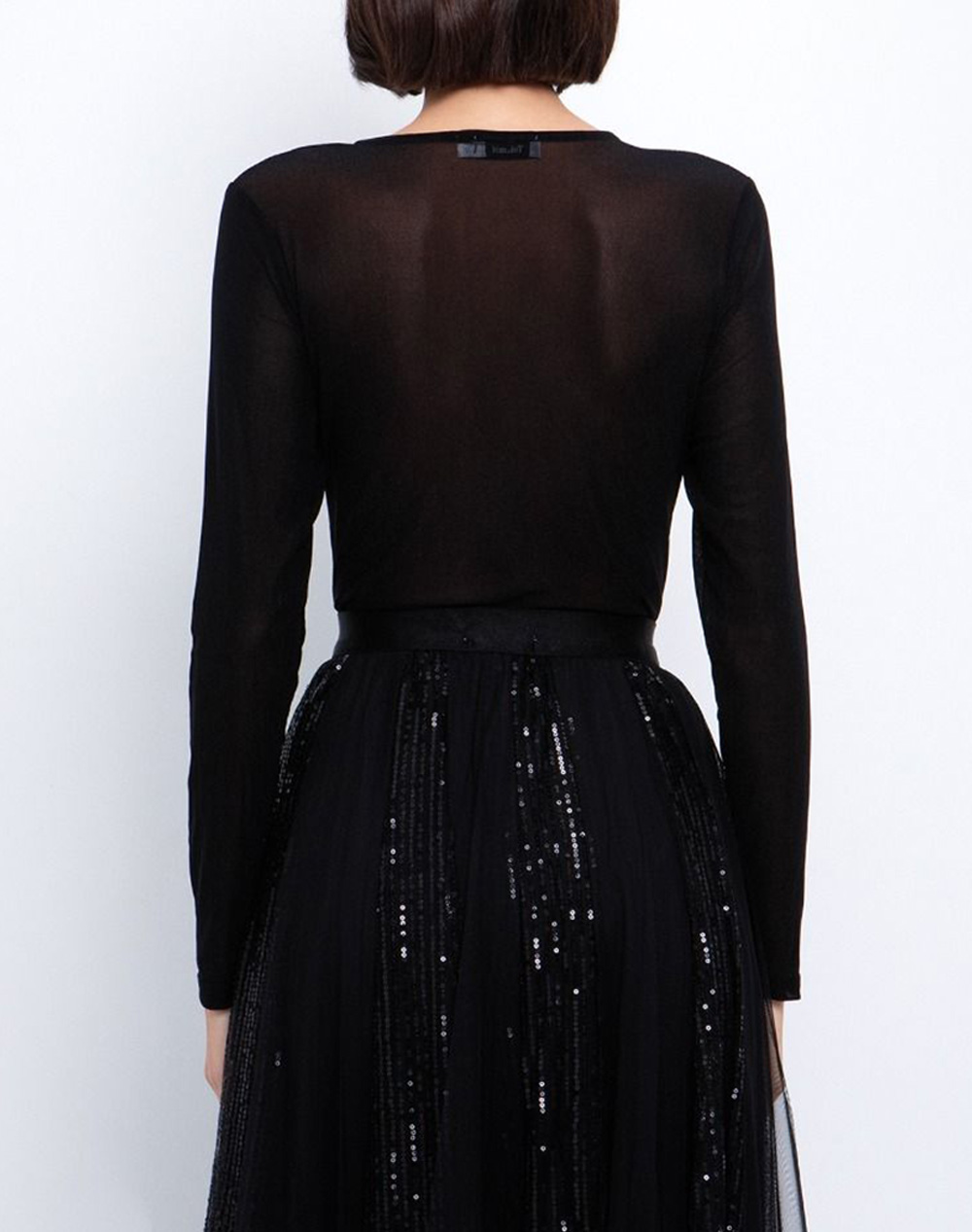 Γυναικείο κορμάκι, σε εφαρμοστή γραμμή, μακρυμάνικο, με στρογγυλή λαιμόκοψη και κλείσιμο στο κάτω μέρος με snap κουμπιά. (Σύνθεση: 100% Πολυεστέρας)