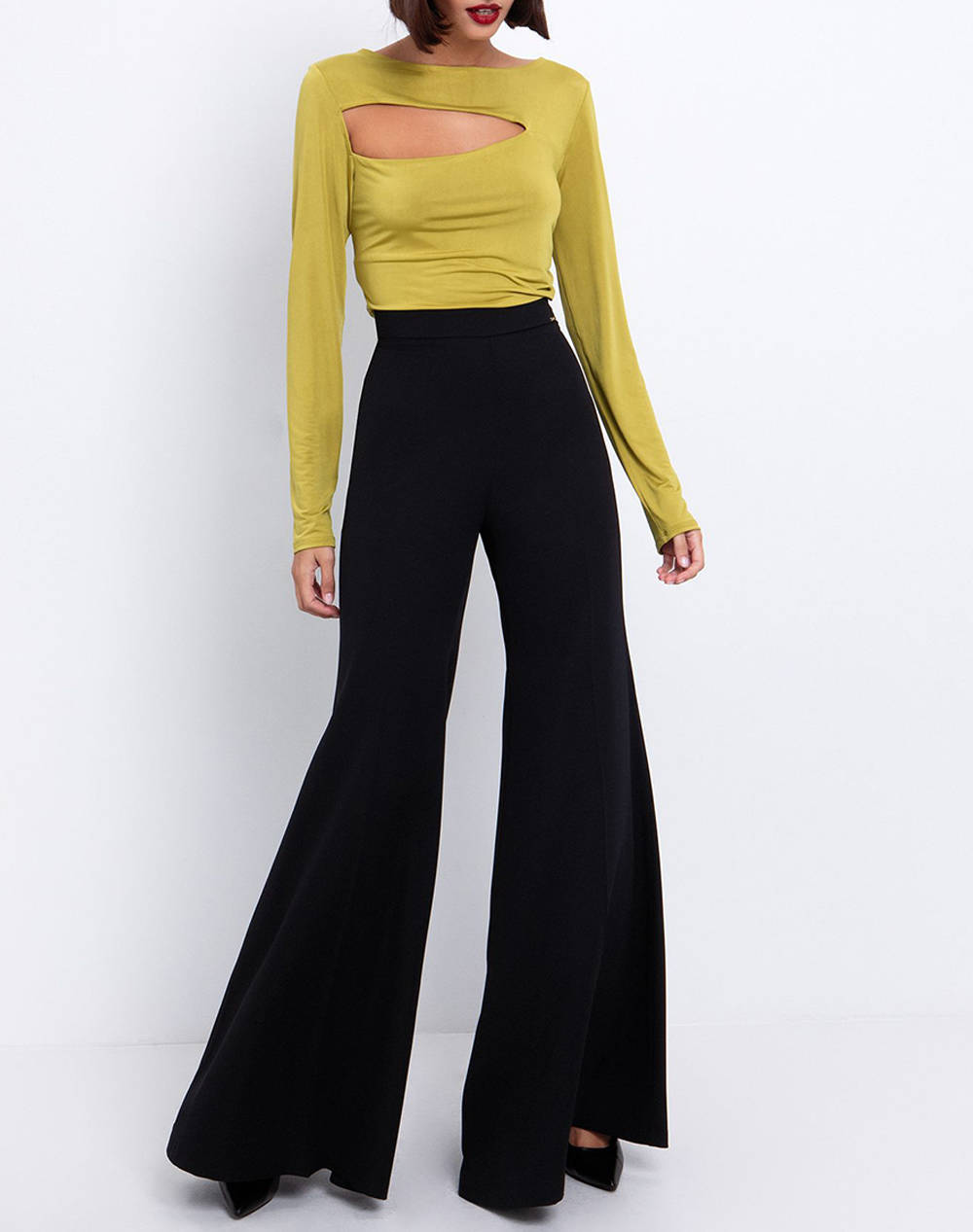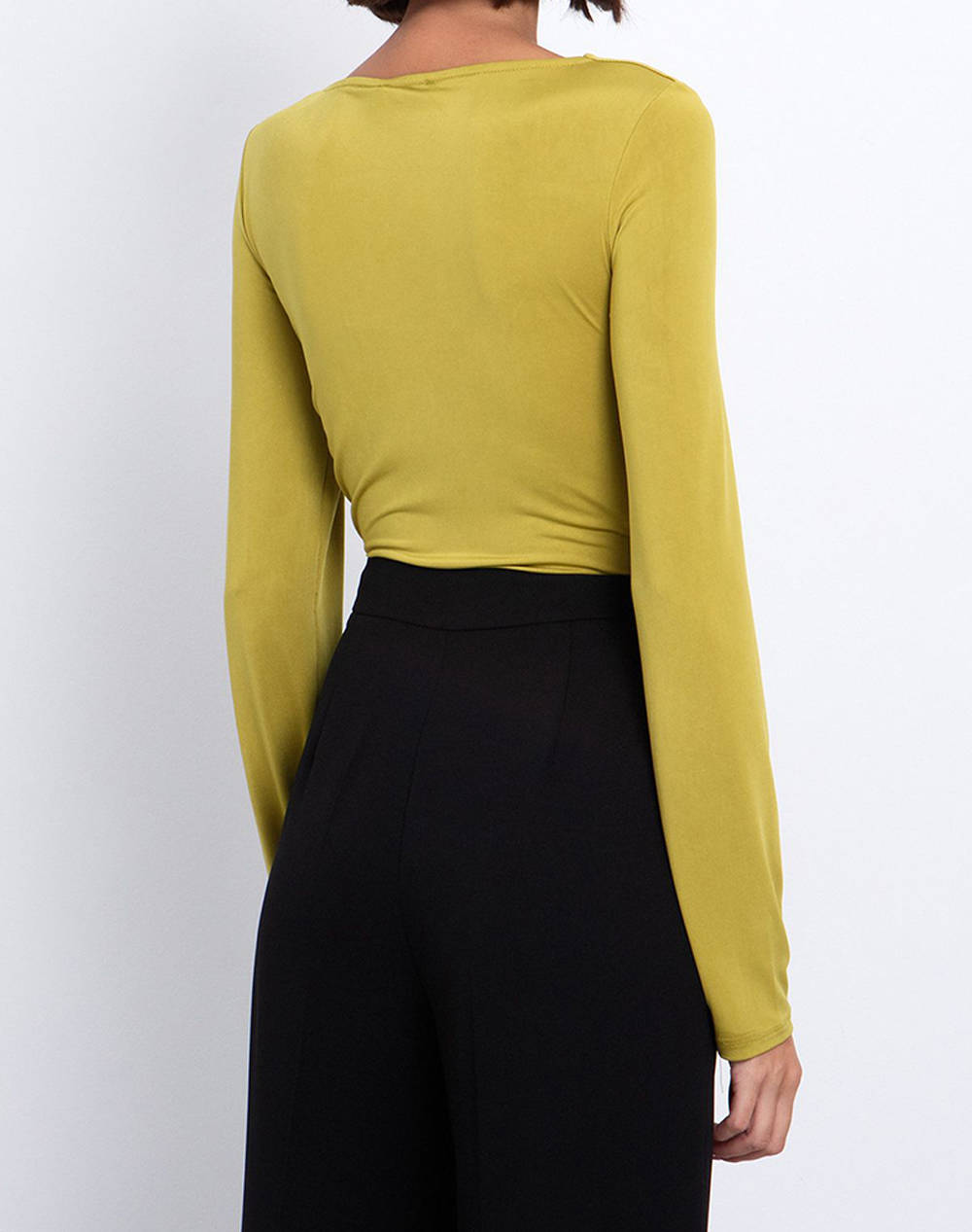 Γυναικεία μπλούζα, σε εφαρμοστή γραμμή, μονόχρωμη, μακρυμάνικη, με curt out λεπτομέρεια και στρογγυλή λαιμόκοψη. (Σύνθεση: 94% Πολυεστέρας, 6% Ελαστάνη)