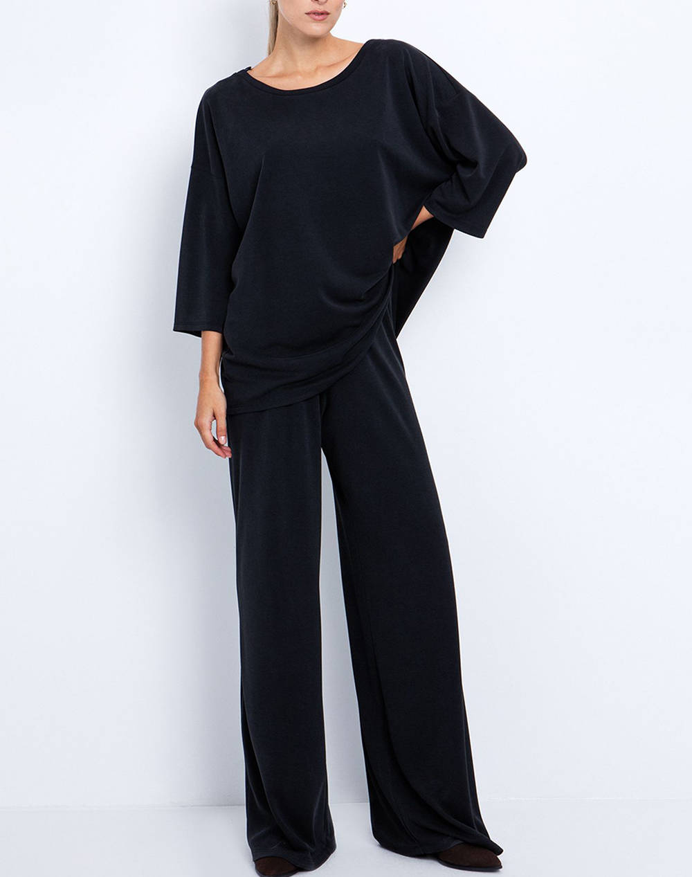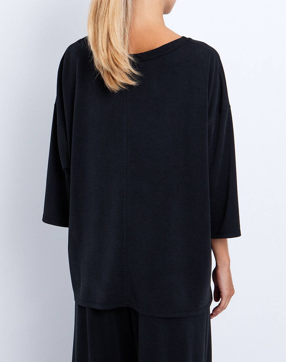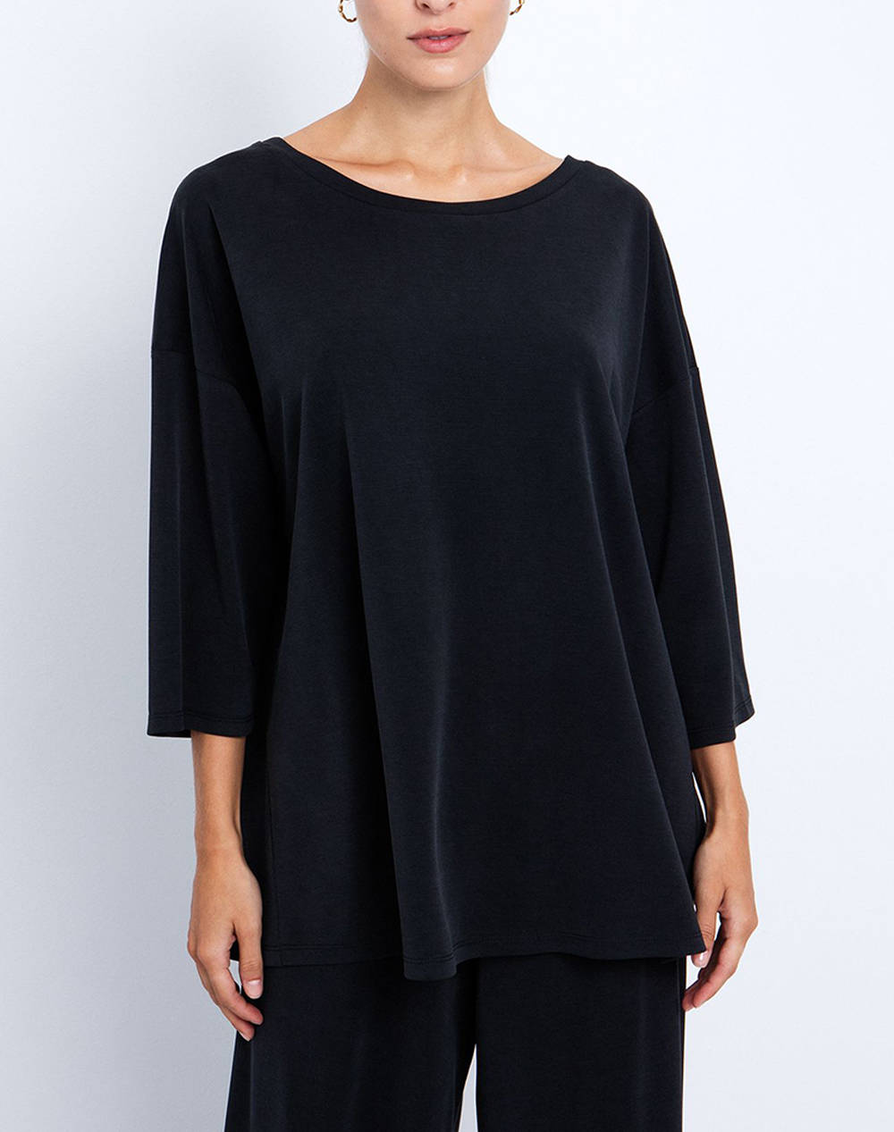 Γυναικεία μπλούζα, σε φαρδιά γραμμή, μονόχρωμη, με μανίκια 3/4 , ανάγλυφη ύφανση και στρογγυλή λαιμόκοψη. (Σύνθεση: 70% Modal, 30% Πολυεστέρας)