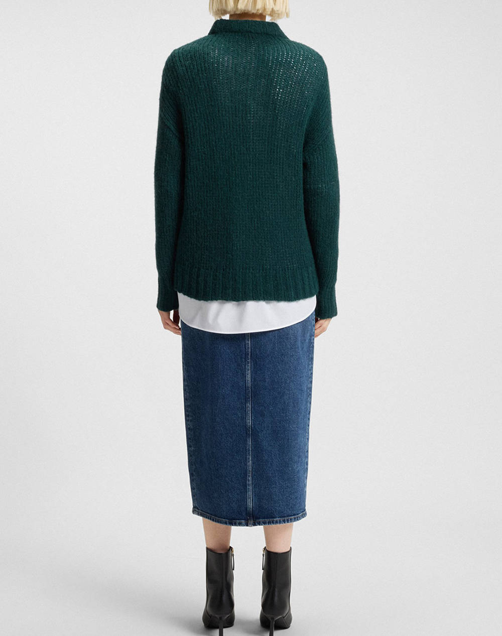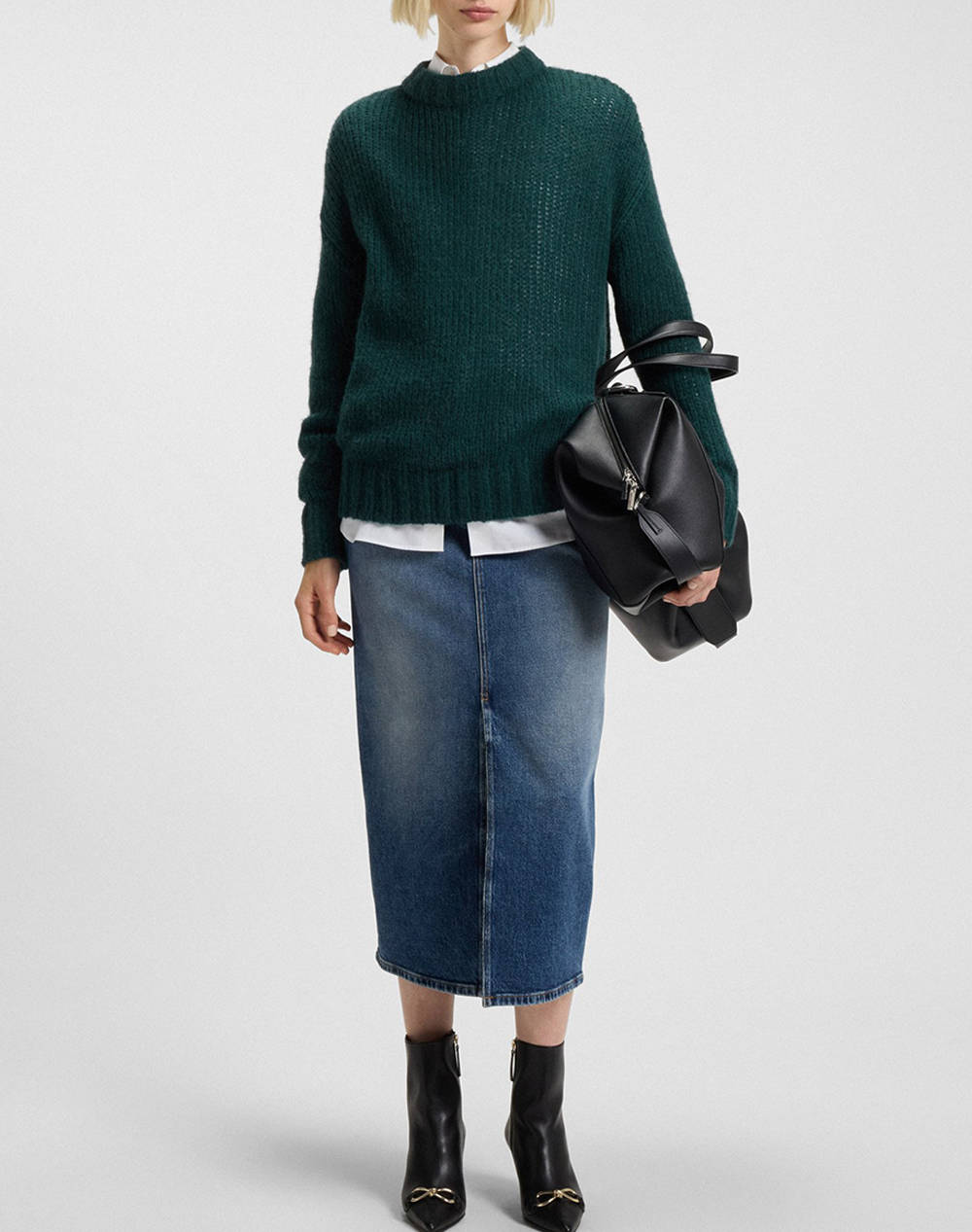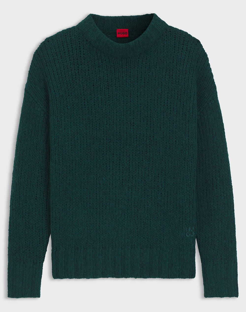 Γυναικείο πουλόβερ, σε oversized γραμμή, με στρογγυλή λαιμόκοψη και διαθέτει λογότυπο στο στρίφωμα. (Σύνθεση: 52% Μαλλί, 26% Πολυαμίδιο, 22% Αλπακά)