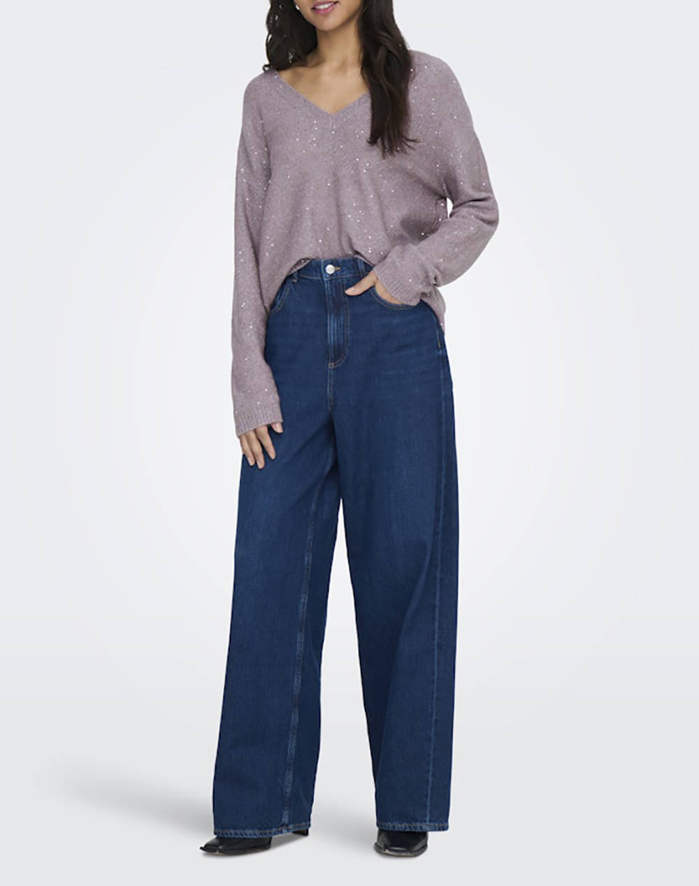 ONLY ONLARIZONA LS SEQUINS V-NECK PUL KNT