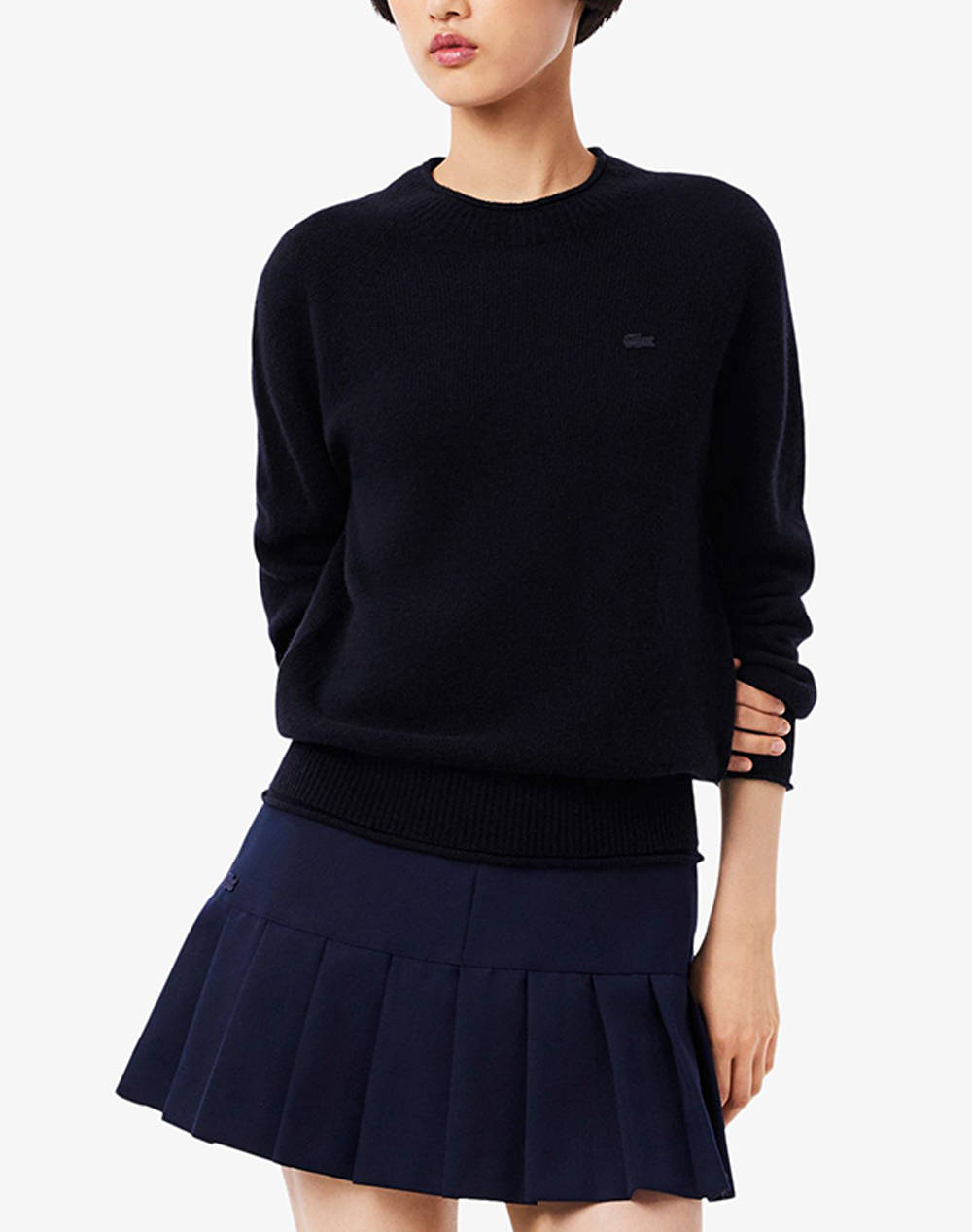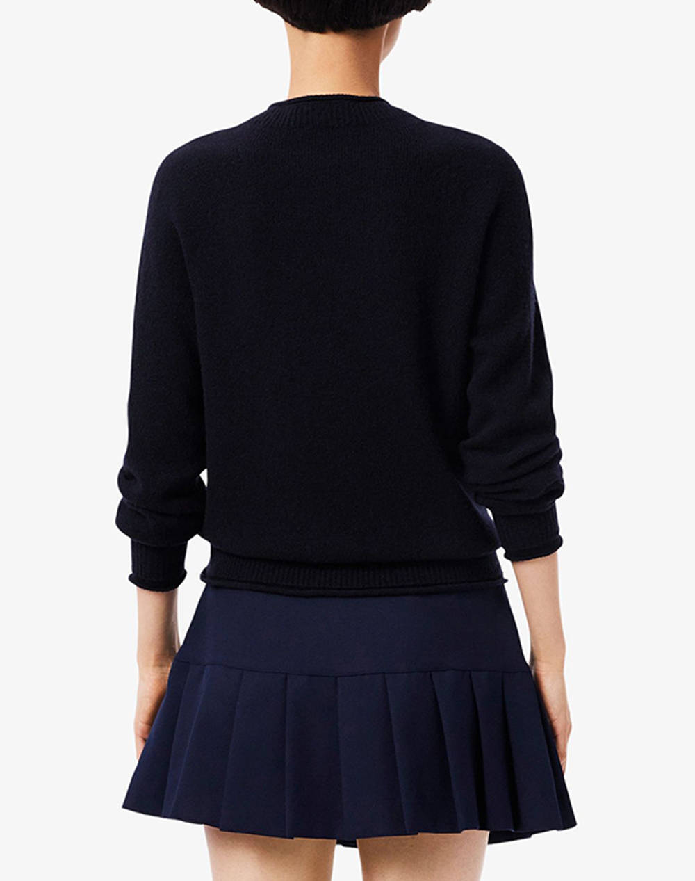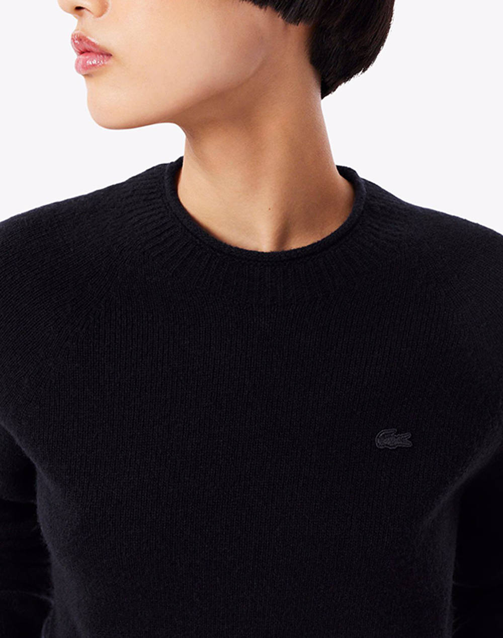 Γυναικείο πουλόβερ, σε κανονική γραμμή, μακρυμάνικο, με στρογγυλή λαιμόκοψη και λογότυπο στο στήθος. (Σύνθεση: 100% Μαλλί)