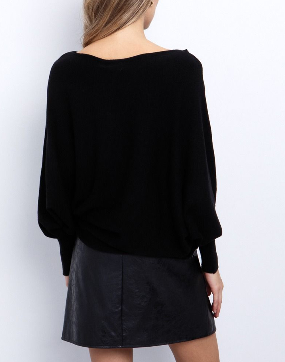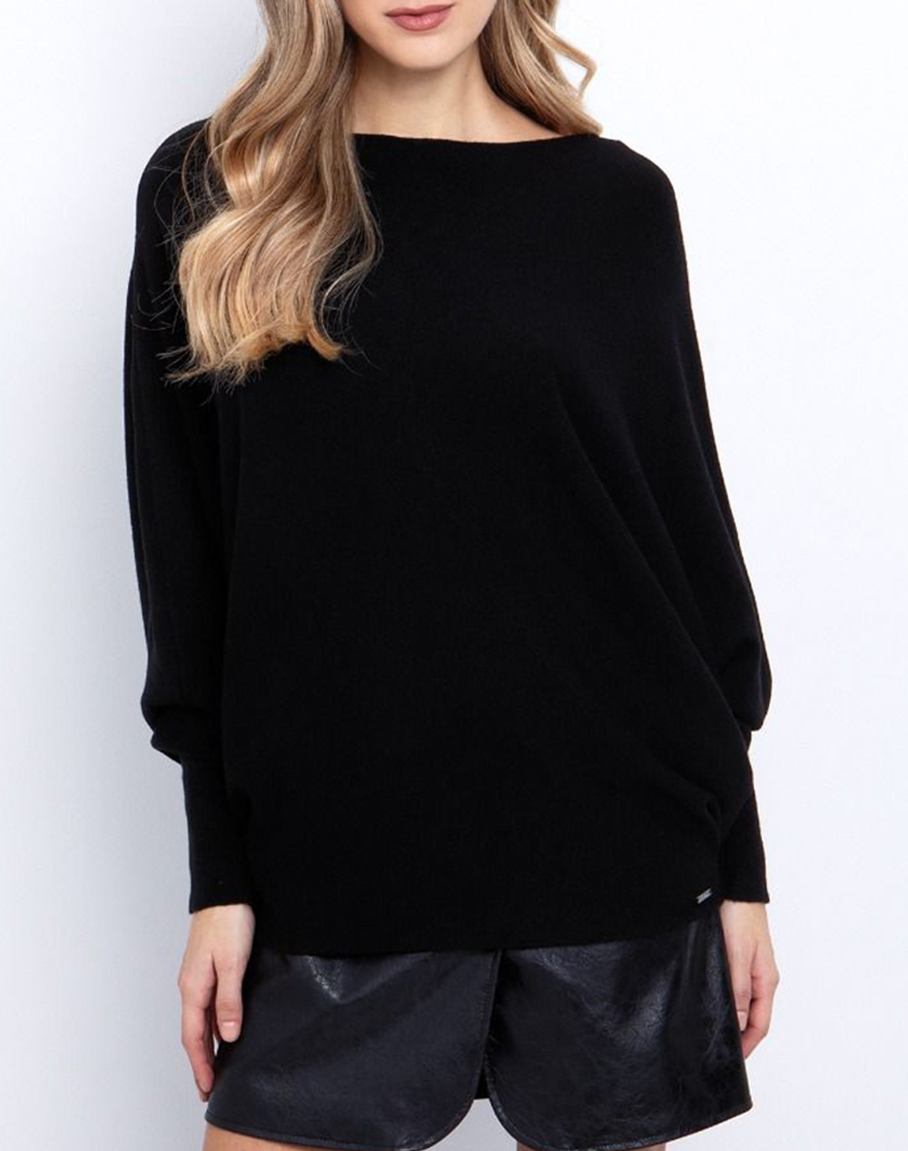 Γυναικεία πλεκτή μπλούζα, σε άνετη γραμμή, μακρυμάνικη, με λεπτή ύφανση και φαρδιά μανίκια με εφαρμοστή μανσέτα. (Σύνθεση: 52% Βισκόζη, 26% Πολυεστέρας, 22% Πολυαμίδιο)