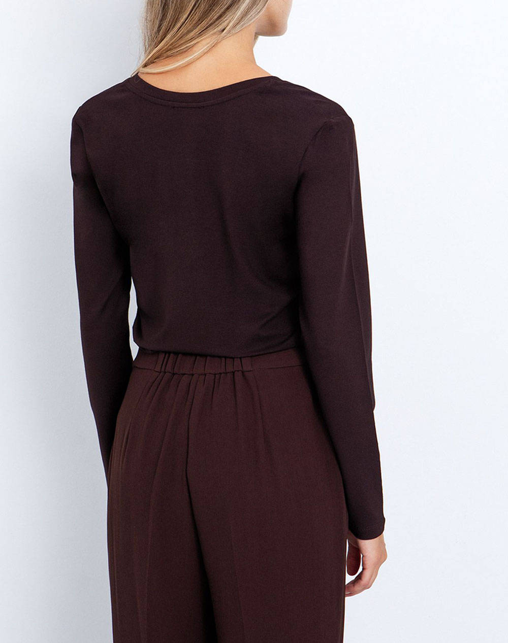 Γυναικεία μπλούζα, μονόχρωμη, με μακρύ μανίκι και"V" λαιμόκοψη. (Σύνθεση: 94% Βισκόζη, 6% Ελαστάνη)