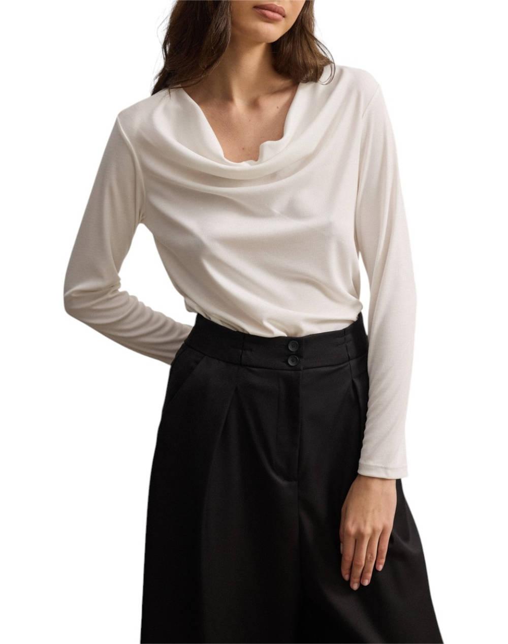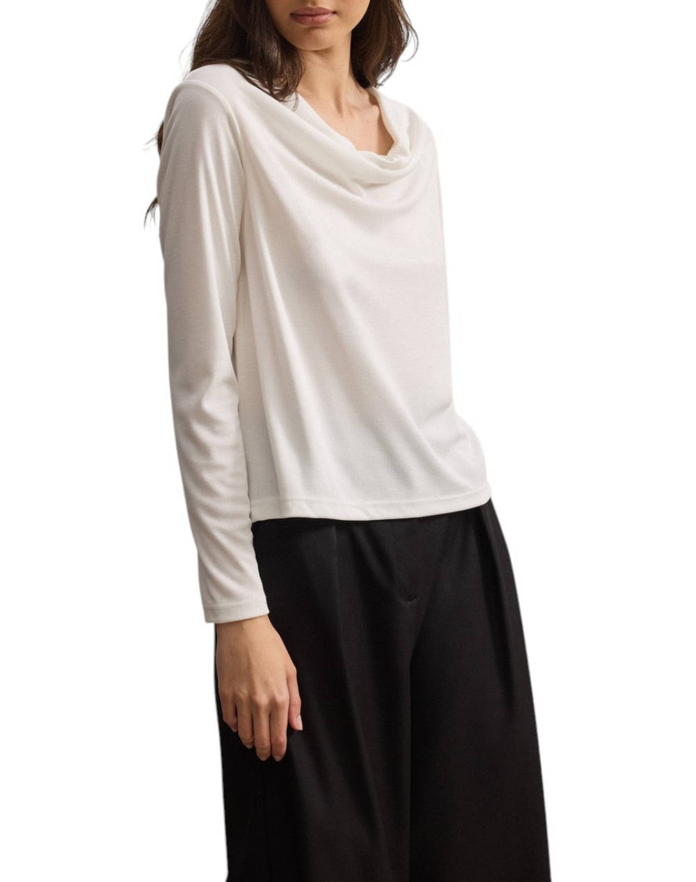 Γυναικεία μπλούζα, μονόχρωμη, μακρυμάνικη, με ριπ ύφανση και ντραπέ λαιμόκοψη. (Σύνθεση: 68% Μοντάλ, 32% Πολυεστέρας)
