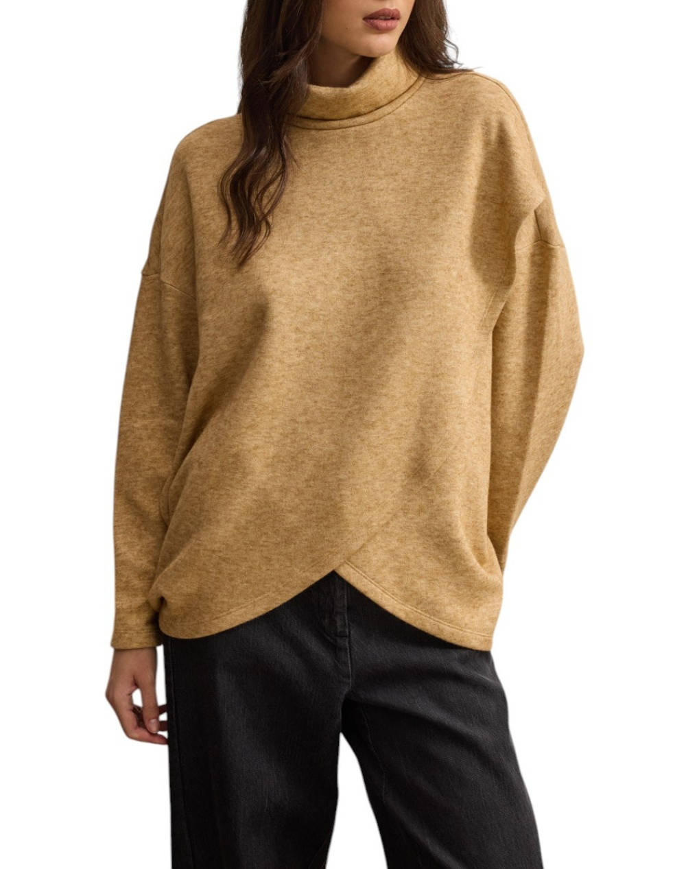 Γυναικεία μπλούζα, σε φαρδιά γραμμή, μονόχρωμη, μακρυμάνικη, με ζιβάγκο και κρουαζέ σχέδιο μπροστά. (Σύνθεση: 45% Βισκόζη, 36% Πολυέστερας,19% Πολυαμίδιο)