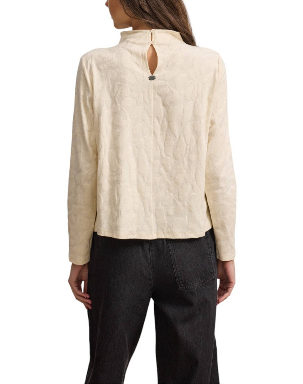 Γυναικεία μπλούζα, μονόχρωμη, μακρυμάνικη, με ανάγλυφο ζακάρ, όρθιο γιακά και κουμπιά στο πίσω μέρος. (Σύνθεση: 95% Βαμβάκι, 5% Ελαστάνη)