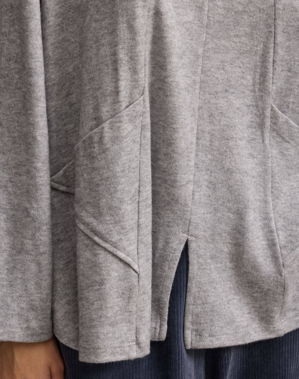 Γυναικεία μπλούζα, μονόχρωμη, μακρυμάνικη, με χαλαρό ζιβάγκο, διακριτικό άνοιγμα στο μπροστινό μέρος και τριγωνικές τσέπες. (Σύνθεση: 50% Ρεγιόν, 25% Πολυέστερας, 25% Πολυαμίδιο)