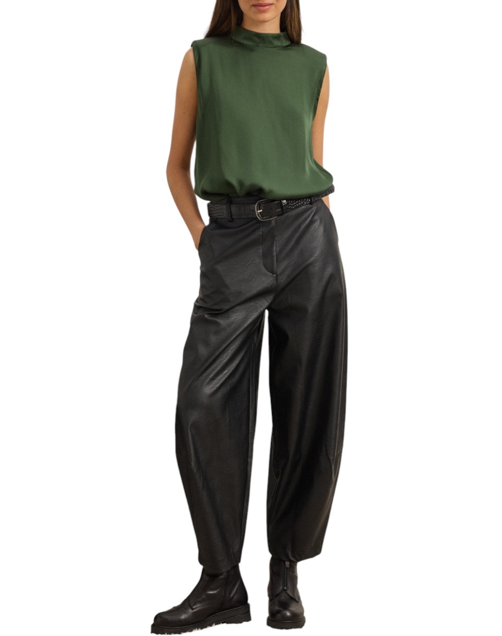 Γυναικείο σατέν τοπ, σε κανονική γραμμή, αμάνικο, με βάτες στους ώμους και κλείσιμο με φερμουάρ στη πλάτη. (Σύνθεση: 100% Βισκόζη)