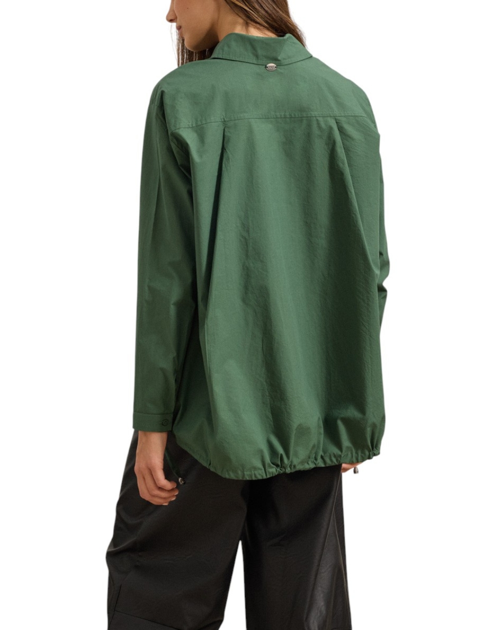 Γυναικεία τουνίκ, σε άνετη γραμμή, μακρυμάνικη, ασύμμετρη, με κλασικό γιακά, μπροστινή τσέπη, μπροστινά κουμπιά και ανοίγματα στο πλάι. (Σύνθεση: 100% Βαμβάκι)