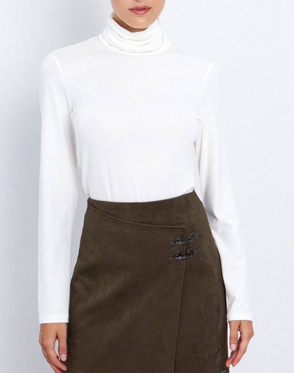 Γυναικεία μπλούζα, μονόχρωμη, μακρυμάνικη, με εφαρμοστή γραμμή και γυριστό ντραπέ λαιμό. (Σύνθεση: 94% Βισκόζη, 6% Ελαστάνη)
