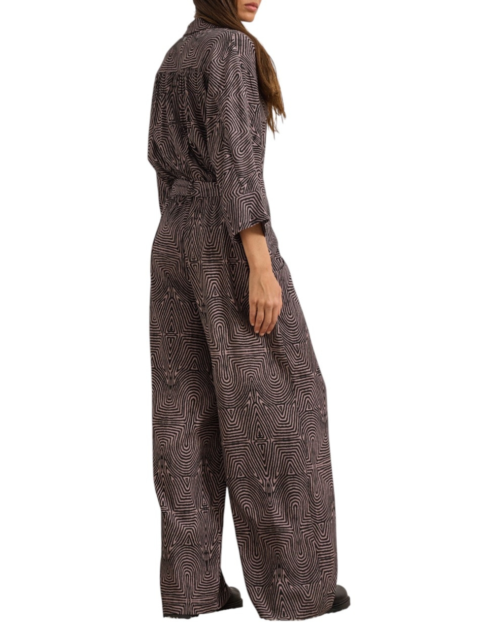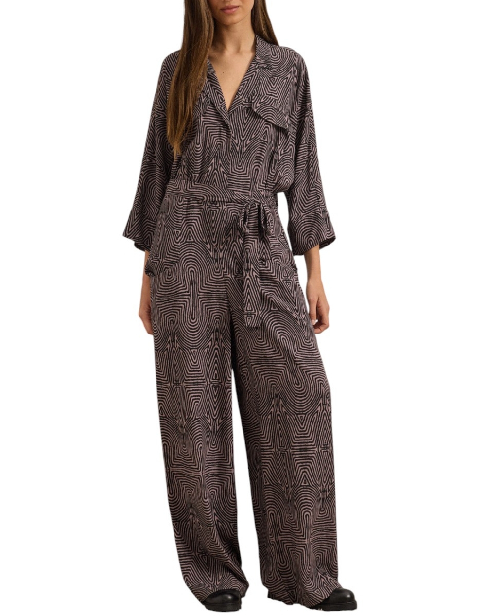 Γυναικεία ολόσωμη φόρμα, σε κανονική γραμμή, μανίκι 3/4, με ζώνη, μπροστινές τσέπες και κλείσιμο με μπροστινό φερμουάρ και κουμπί. (Σύνθεση: 100% Βισκόζη)